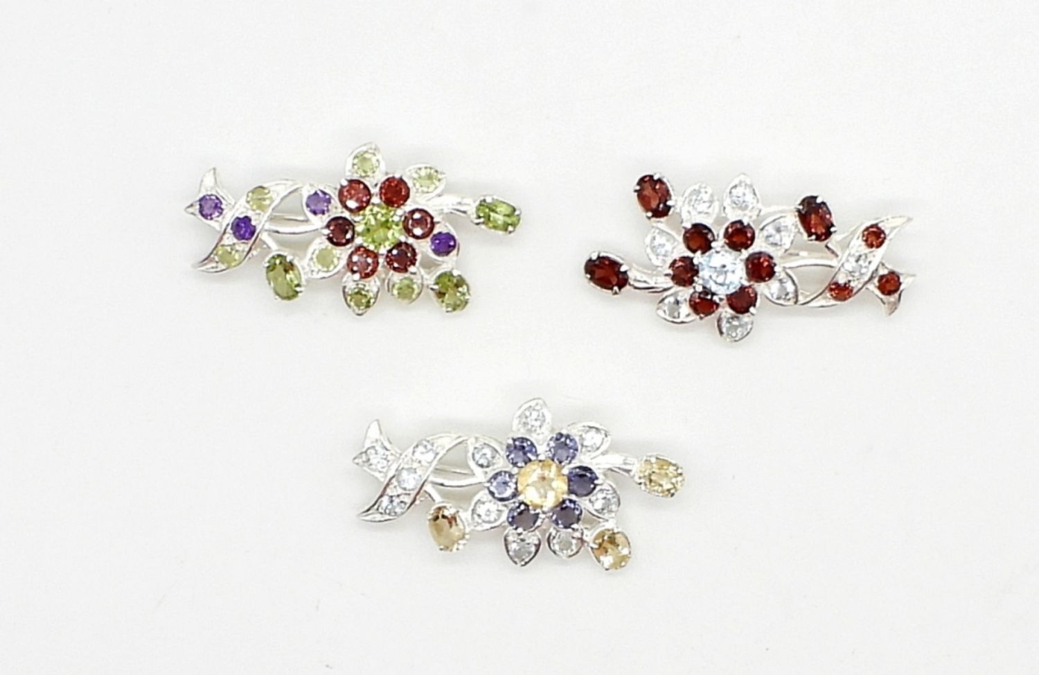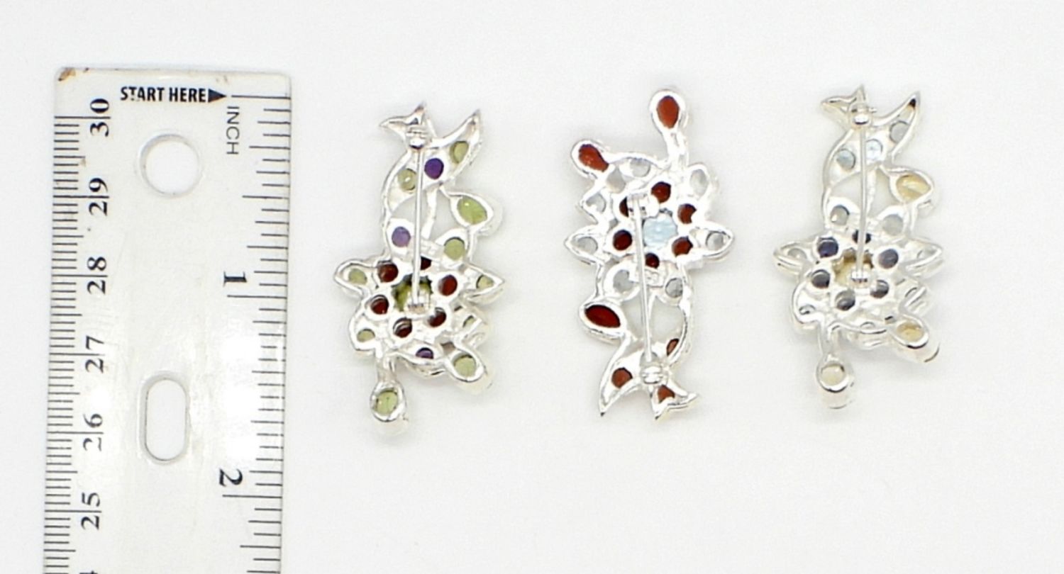 17 DWT; STERLING & MULTI COLOR GEMSTONE BROOCHES – ALL MARKED 925