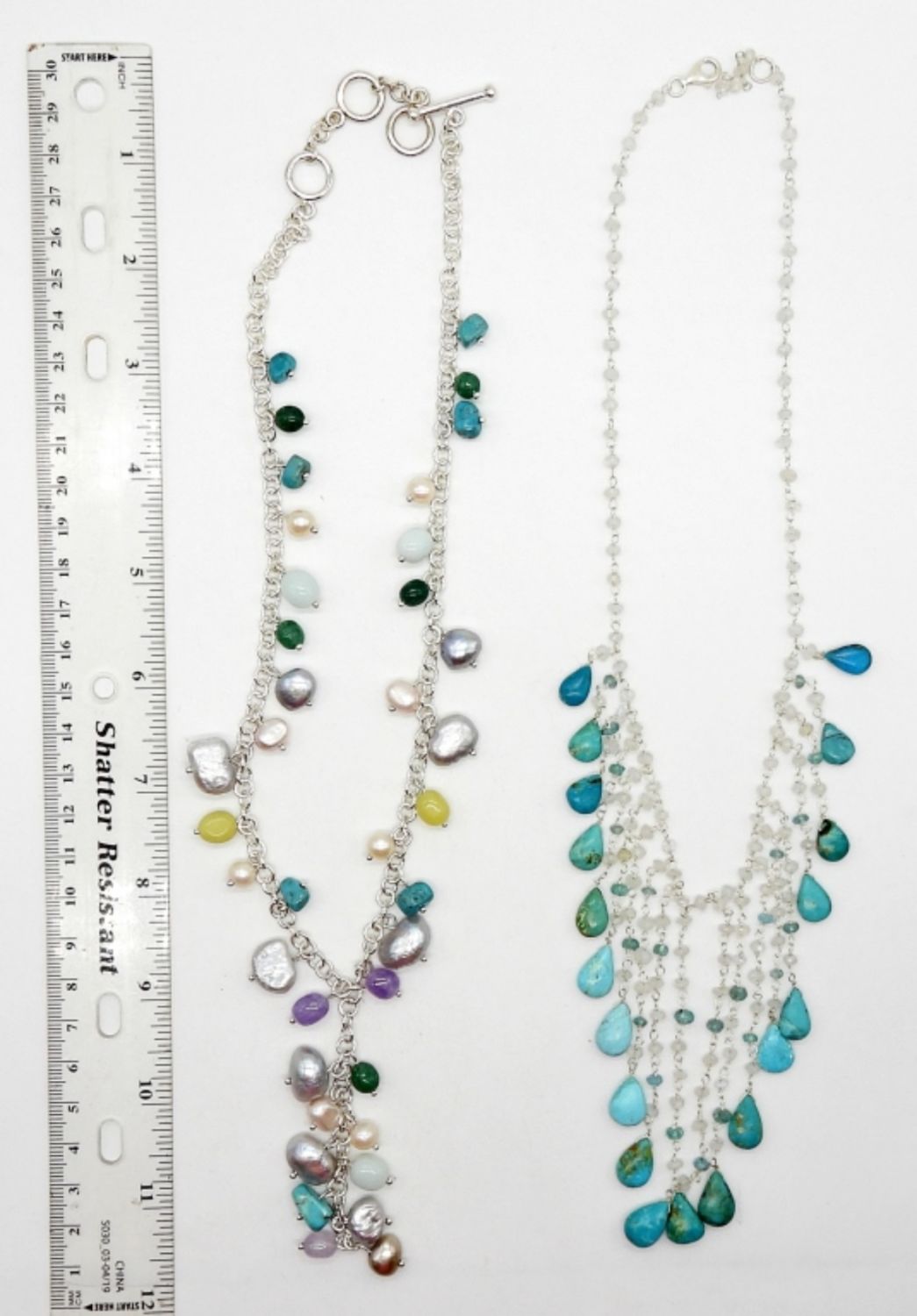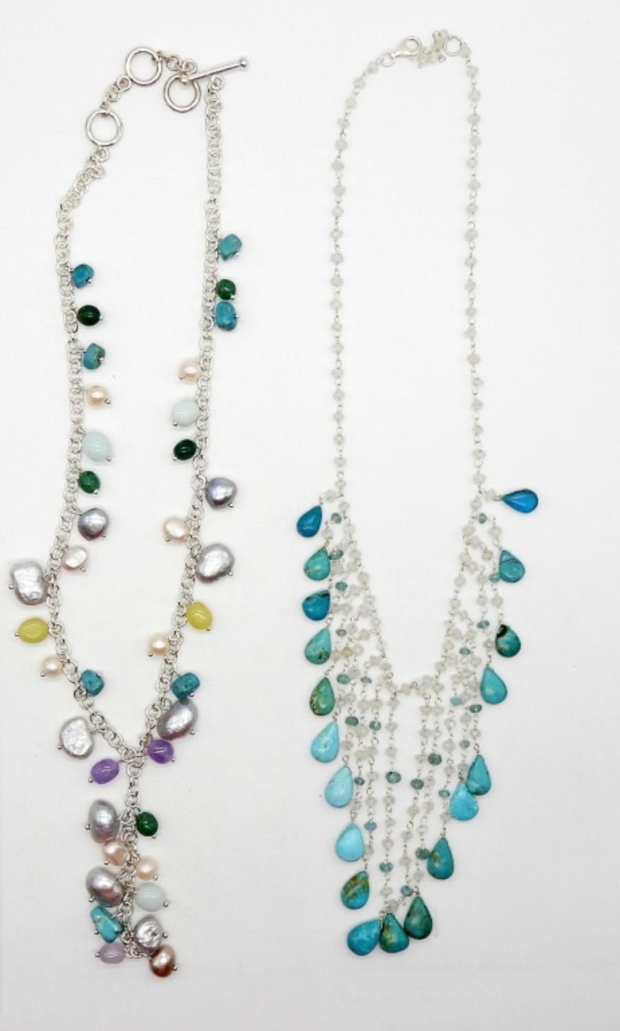 17″ & 20″ STERLING NECKLACES WITH TURQUOISE & MULTI COLOR BEADS – BOTH MARKED 925