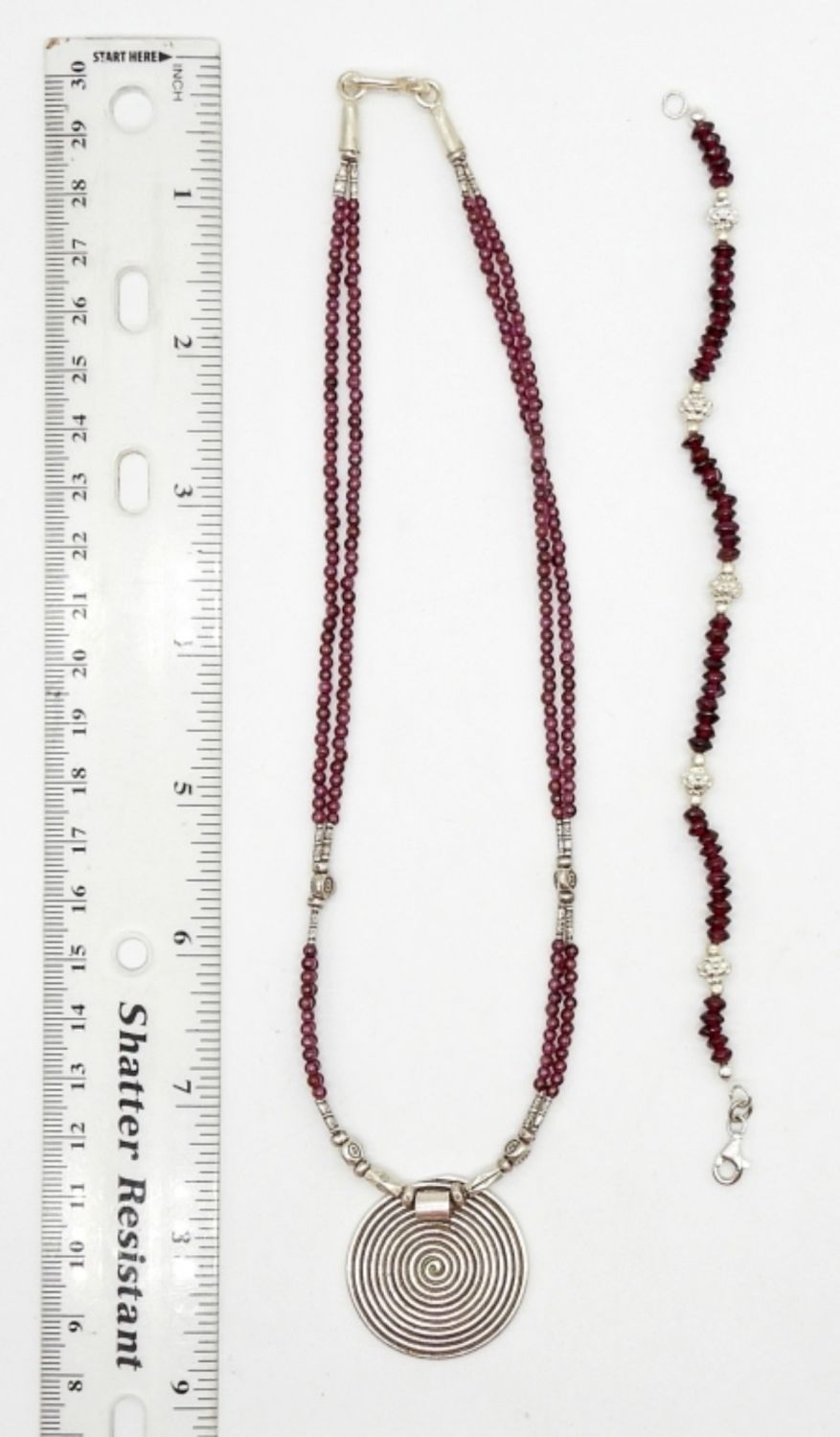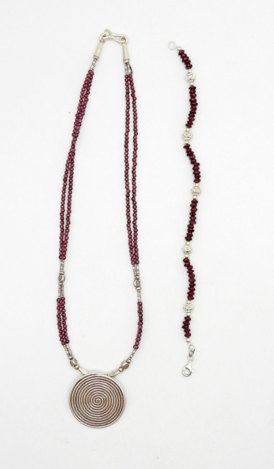 STERLING SILVER & RED NATURAL STONE BEADED NECKLACE & MATCHING BRACELET – MARKED 925