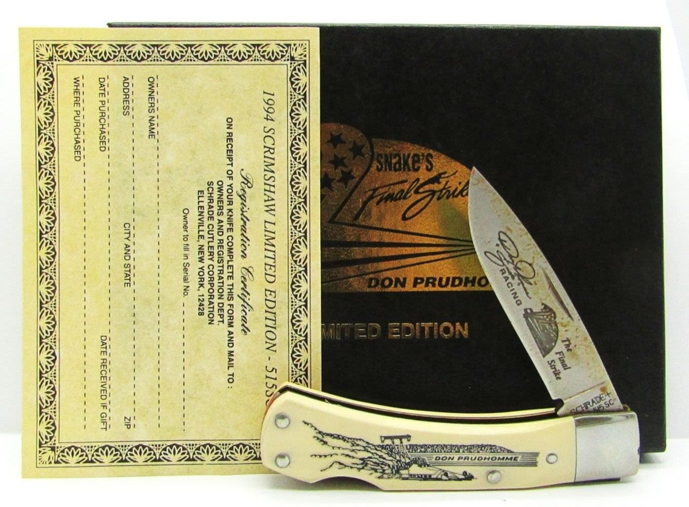 Limited Edition Snake’s Final Strike Don Prudhomme with Registration Certificate; Serial Number 073; NEW in Original Box.