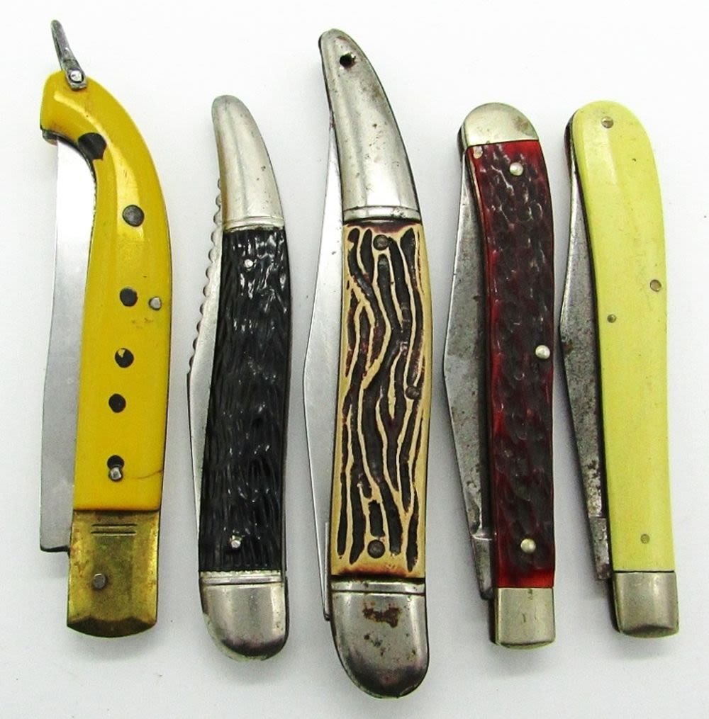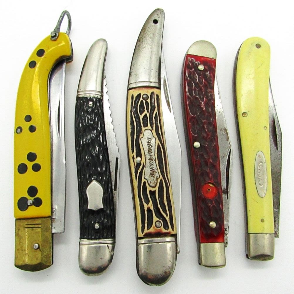 Cooper Inox; CaseXX 31048; Imperial Prov. USA; Sportsman’s Trapper United Boker Solingen Germany; Fish-Knife Colonial Prov. USA; Used Conditions.