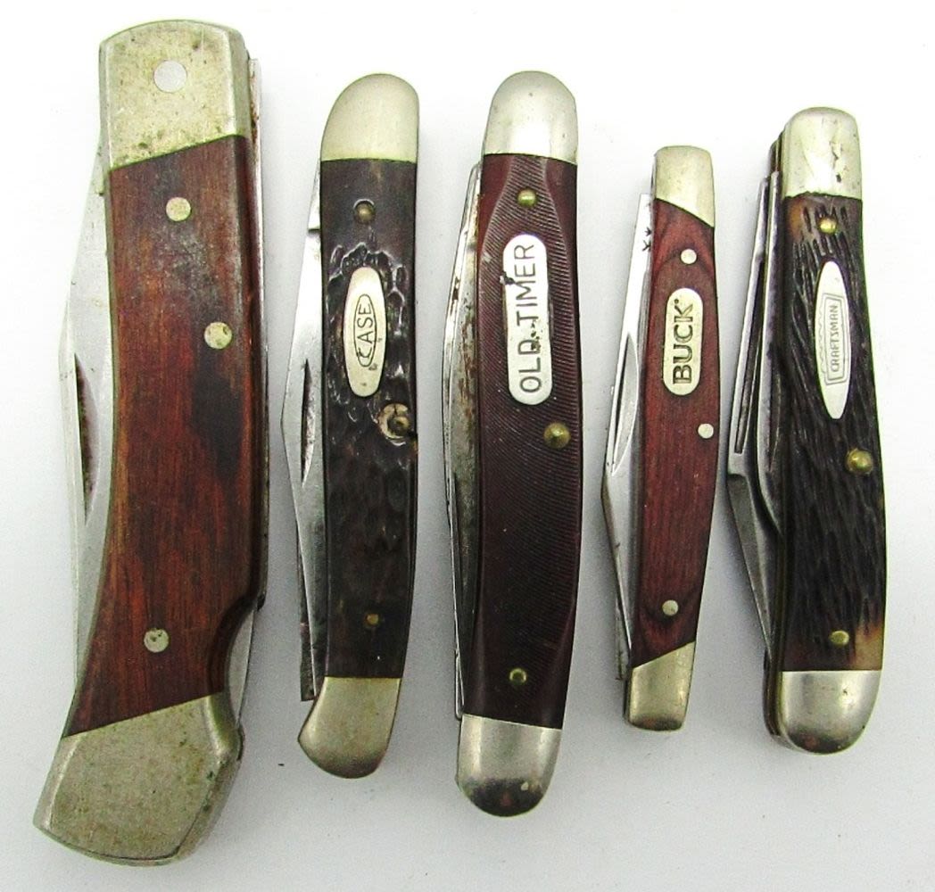 Uncle Henry Lockback (Broken) Schrade LB5; Old Timer Ulster USA 58OT; CaseXX 8-Dot 62109X; Craftsman USA 9507; Buck 375 2010; Used Conditions.