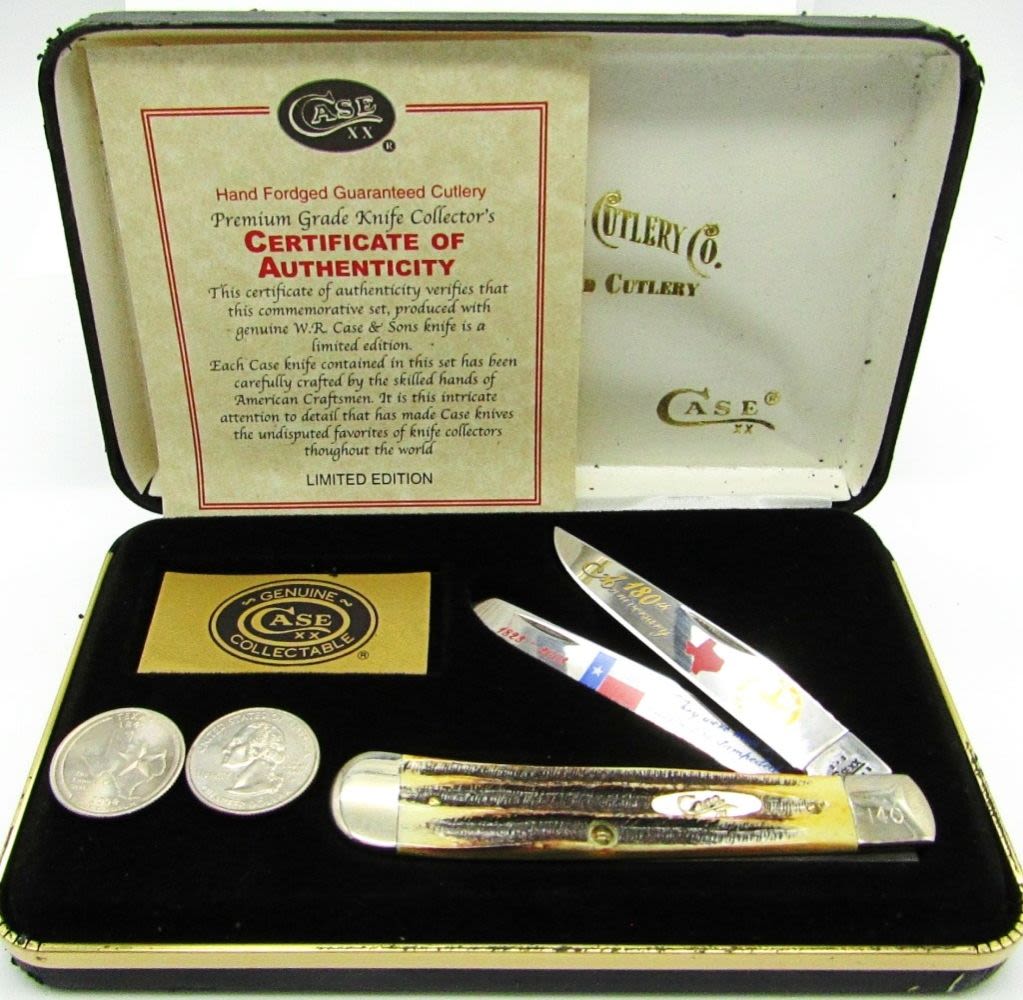 2-Blade Serial Number 140; 1823-2003 “They were men who could not be stampeded.” New in Collectible Case Holder, with COA and (2) 2004 Texas State Quarters.