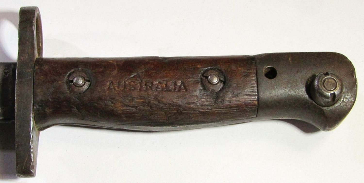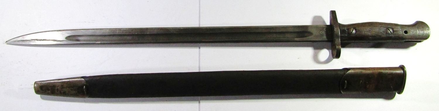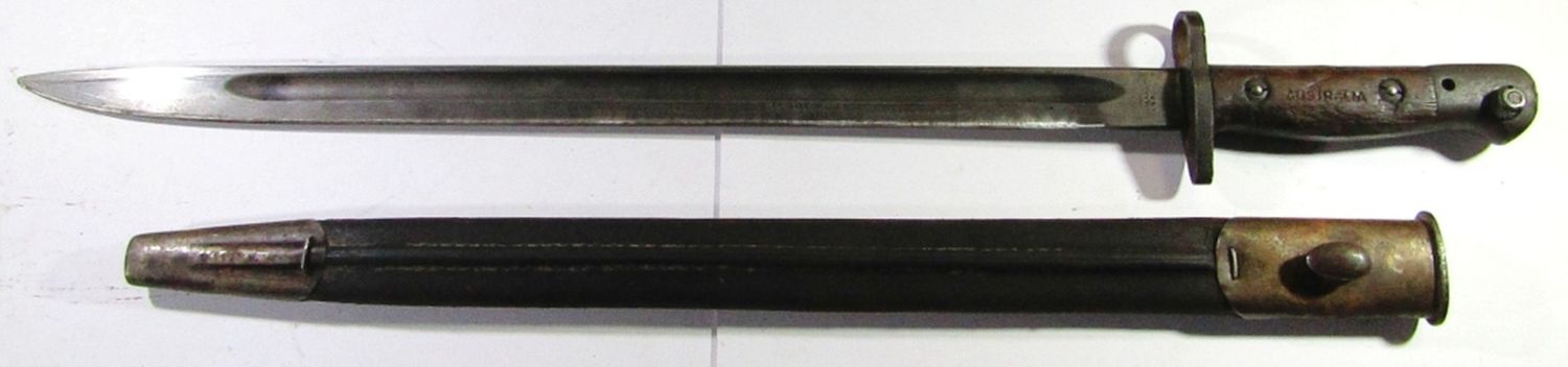 With Scabbard; 21.75″ Overall Length, 16.75″ Blade Length; Handle Marked “Australia”. Used Condition.