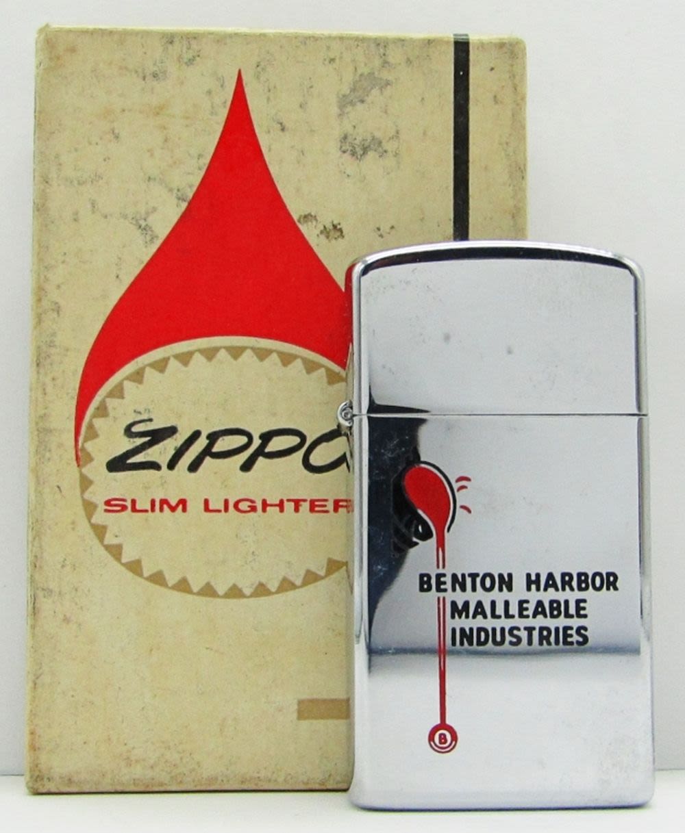“Benton Harbor Malleable Industries”; Unfired Zippo Lighter with Pat. 2517191 Insert.