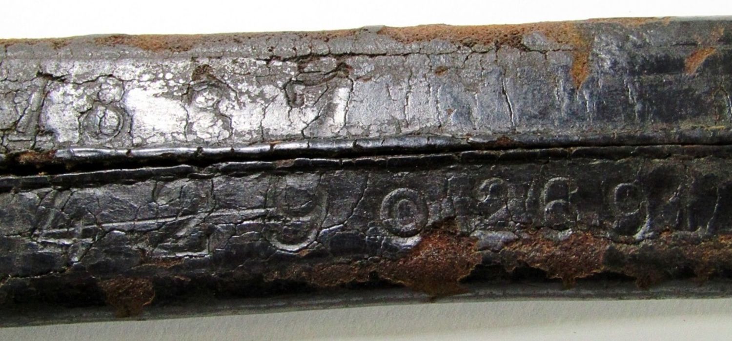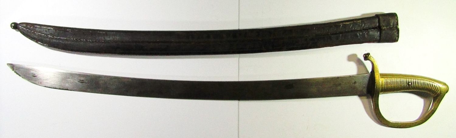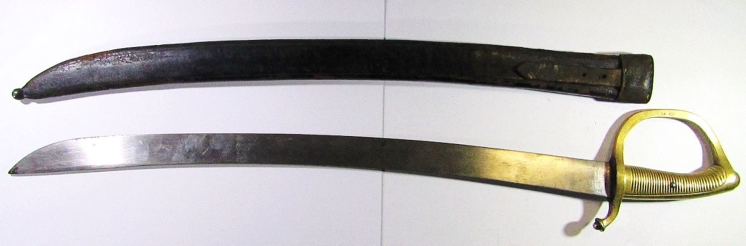 Trooper’s Sword Marked “1835” on Blade, “Y 942″ on Hilt; 23″ Blade, 28” Overall; Scabbard Marked “1837 429 269”; Used Condition.