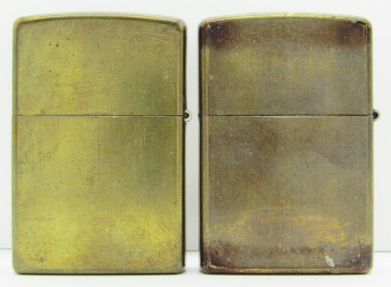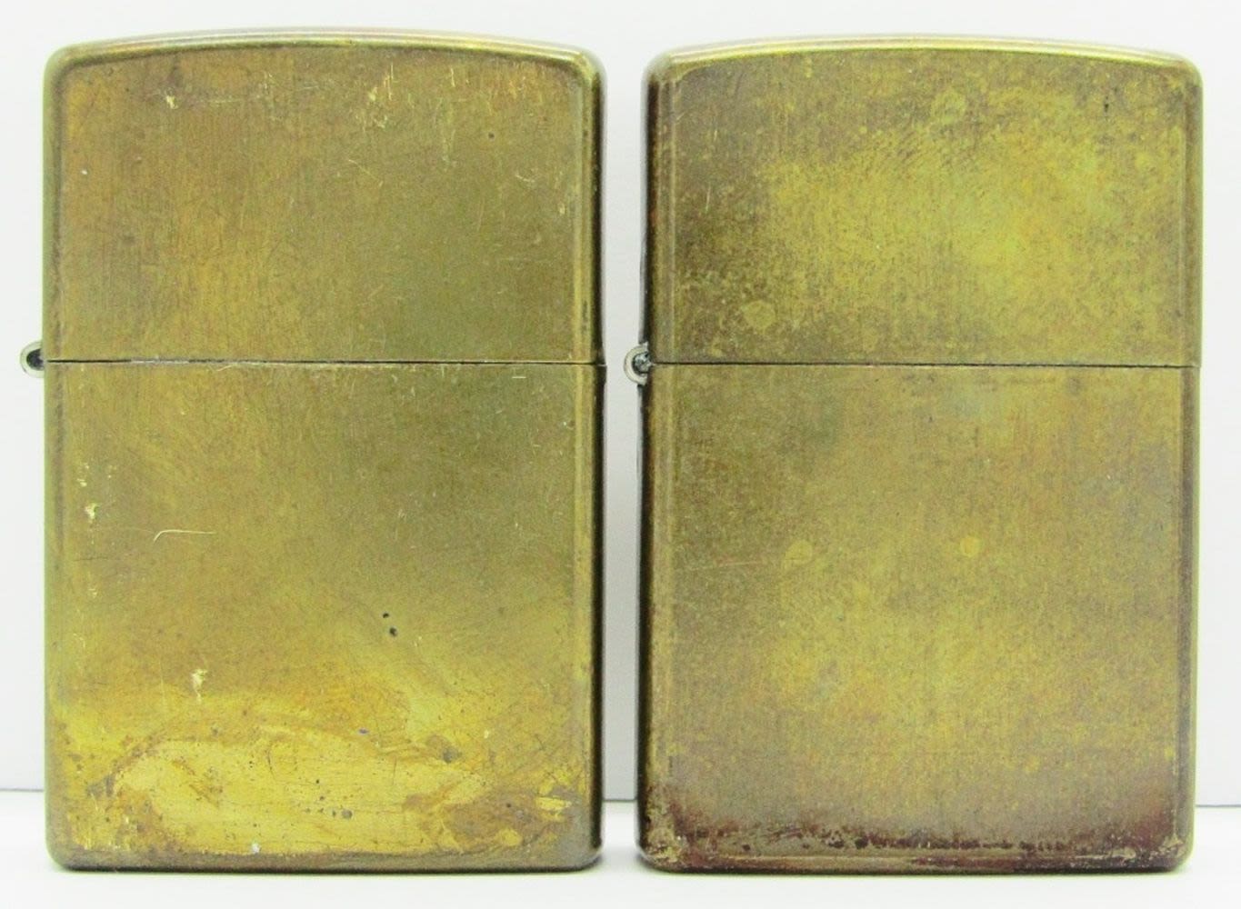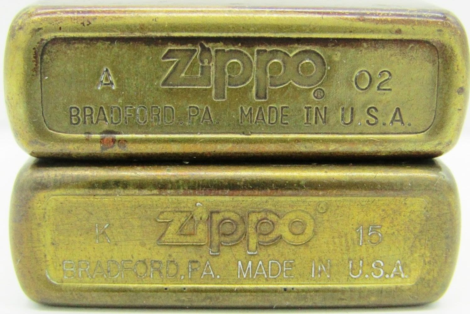 2002 Unfired Zippo Lighter; 2015 Lightly Fired Zippo Lighter; Both Brass Finish.