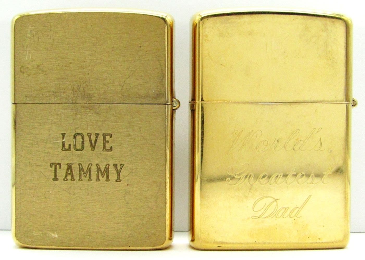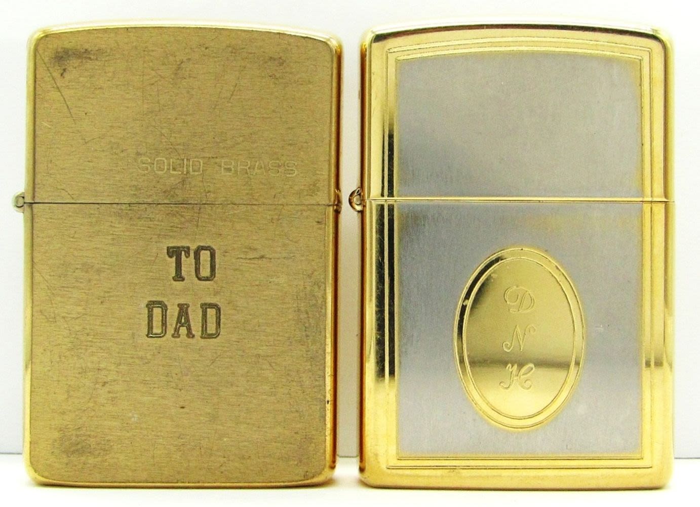 1985 Solid Brass “To Dad” on Front, “Love Tammy” on Back; 1993 “DNH” on Front, “World’s Greatest Dad” on Back; Both Used Conditions.