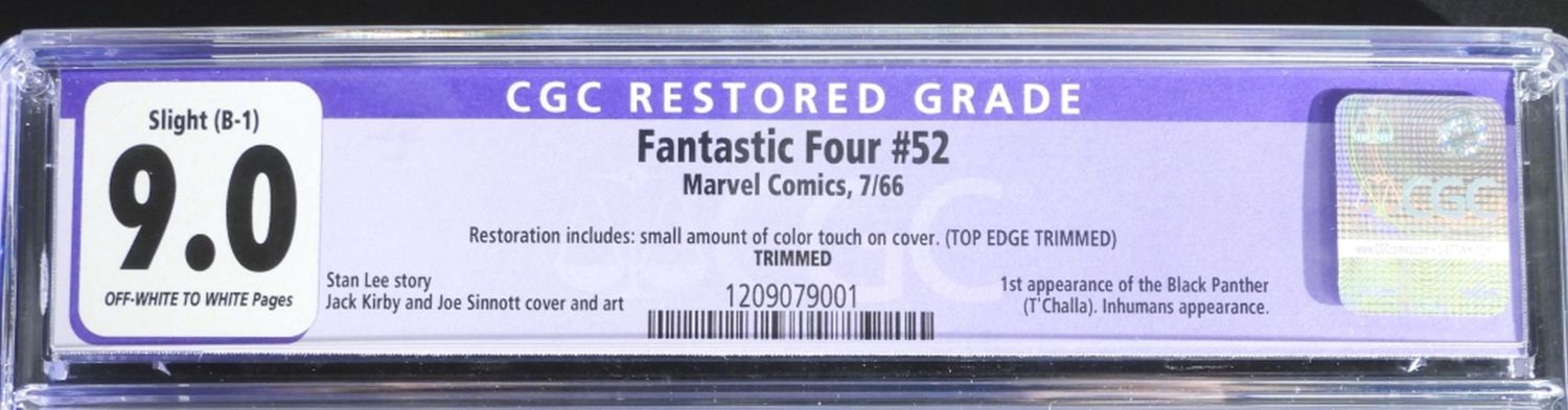 KEY COMIC! 1st APP of the BLACK PANTHER (T’Challa). INHUMANS APP., STAN LEE STORY, JACK KIRBY, AND JOE SINNOTT COVER AND ART – (Slight B-1, Restoration includes: small amount of color touch on cover. Top Edge Trimmed.