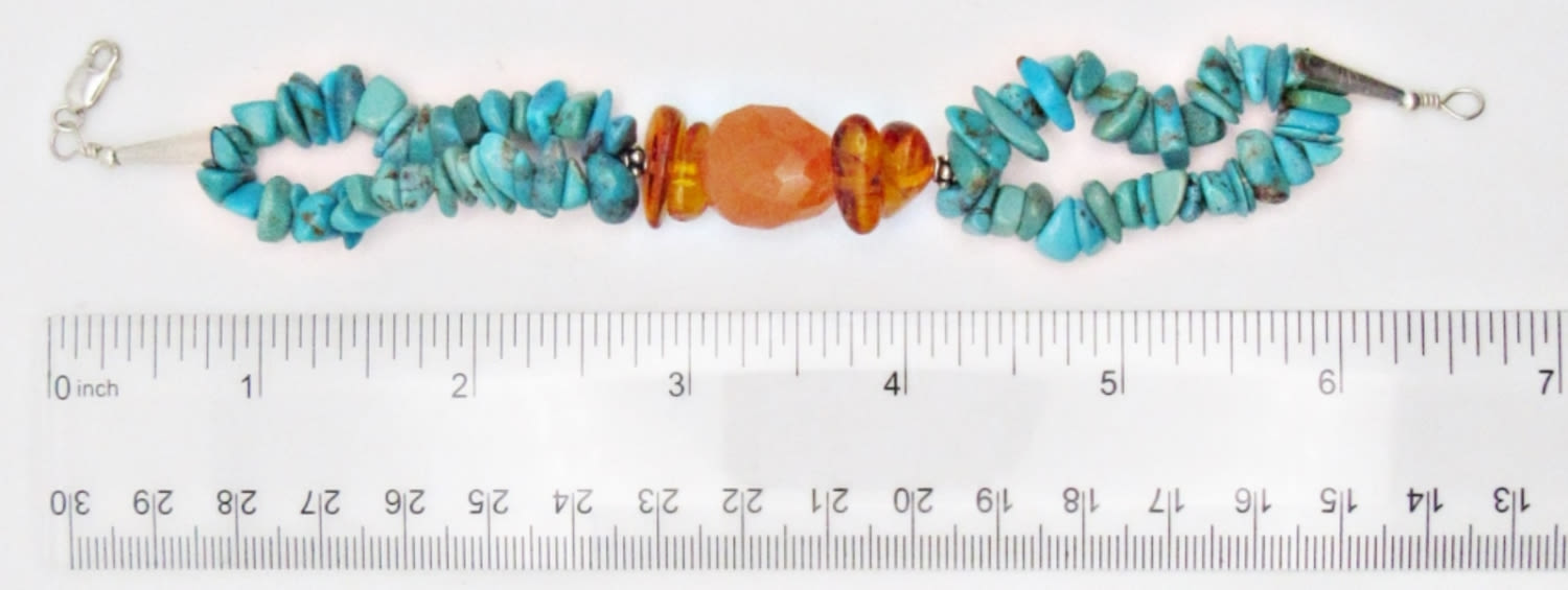 BEADED BRACELET WITH BALTIC AMBER STONE ACCENTS-MEASURES 7 INCHES