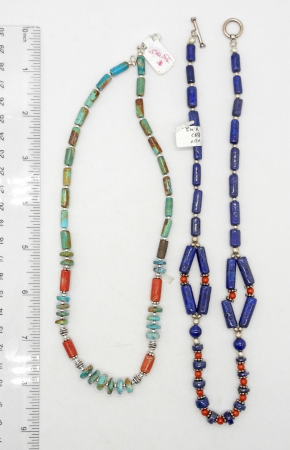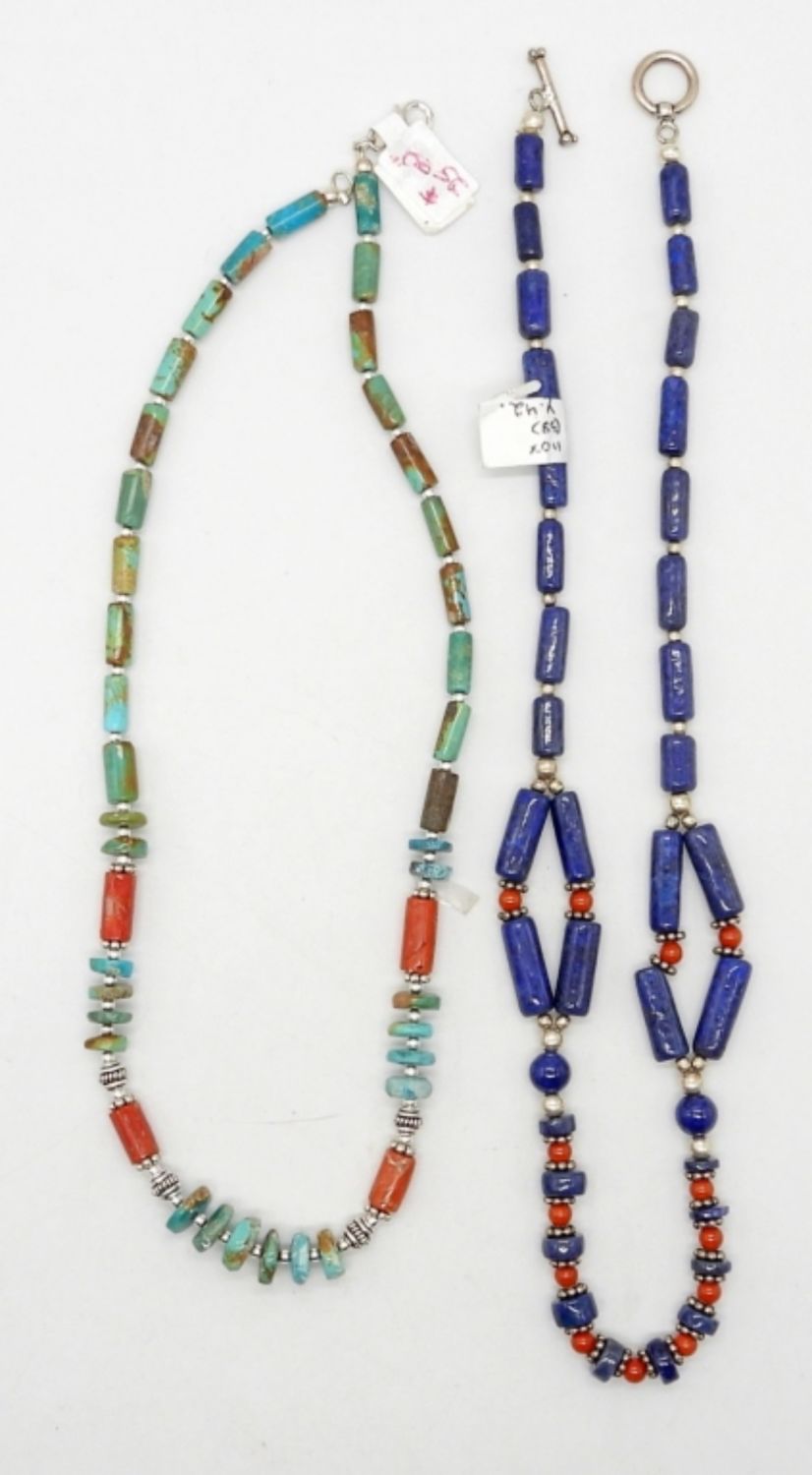 17″ & 18″ STERLING SILVER WITH TURQUOISE, RED & BLUE NATURAL STONES – (1) MARKED 925