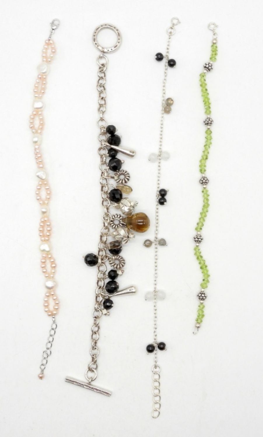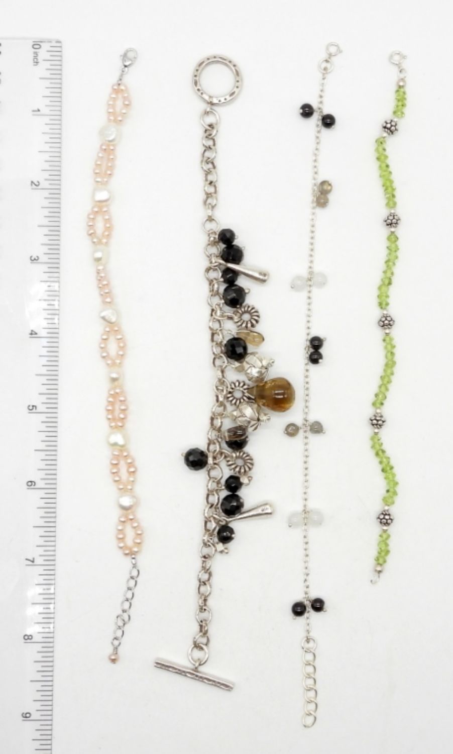 7″-9″ BRACELET LENGTHS – STERLING SILVER, ONYX, MOTHER OF PEARL, SMOKY QUARTZ