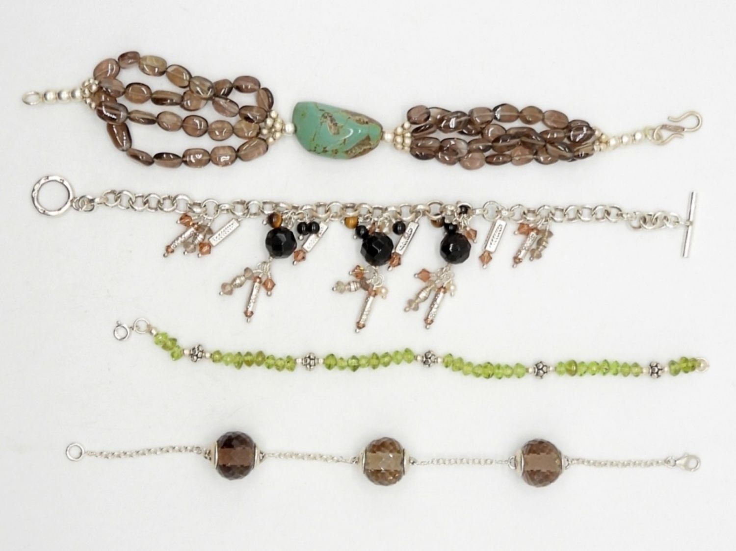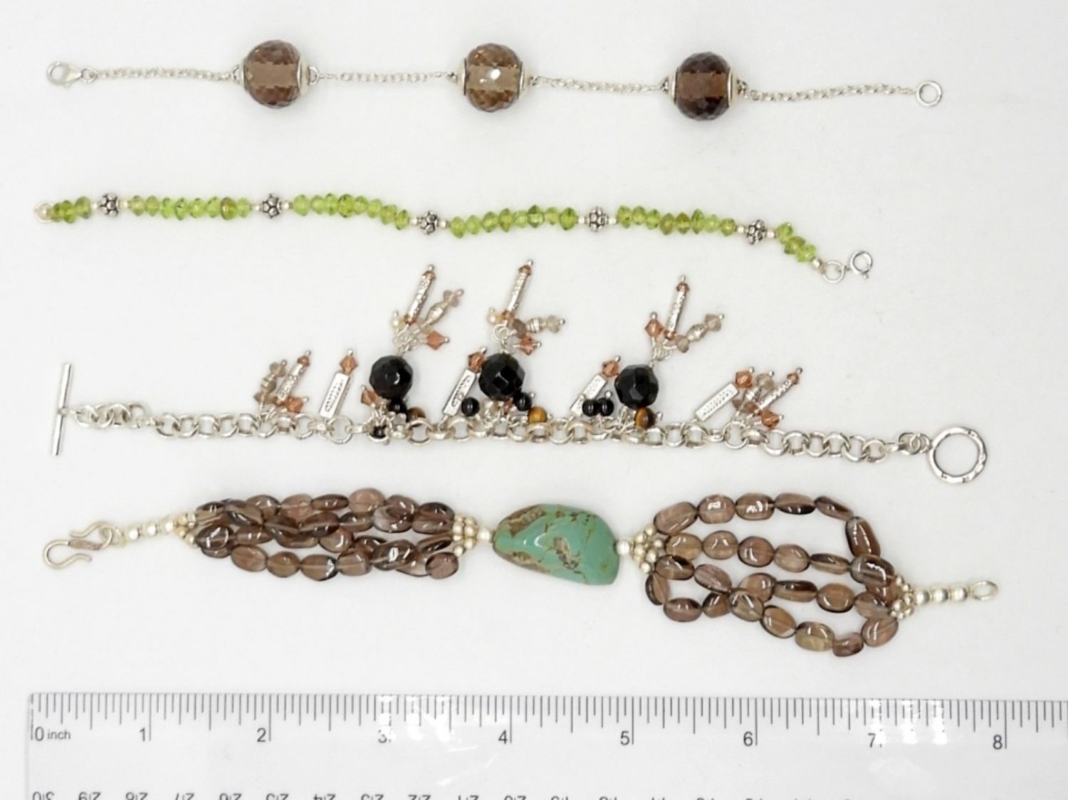 7″ STERLING SILVER BRACELETS WITH TURQUOISE, ONYX & SMOKY QUARTZ – ALL MARKED 925