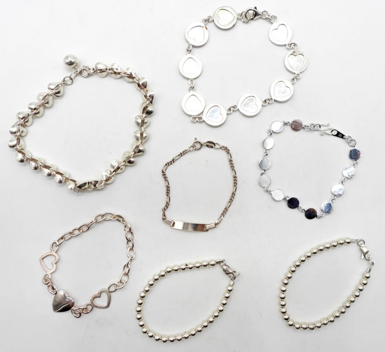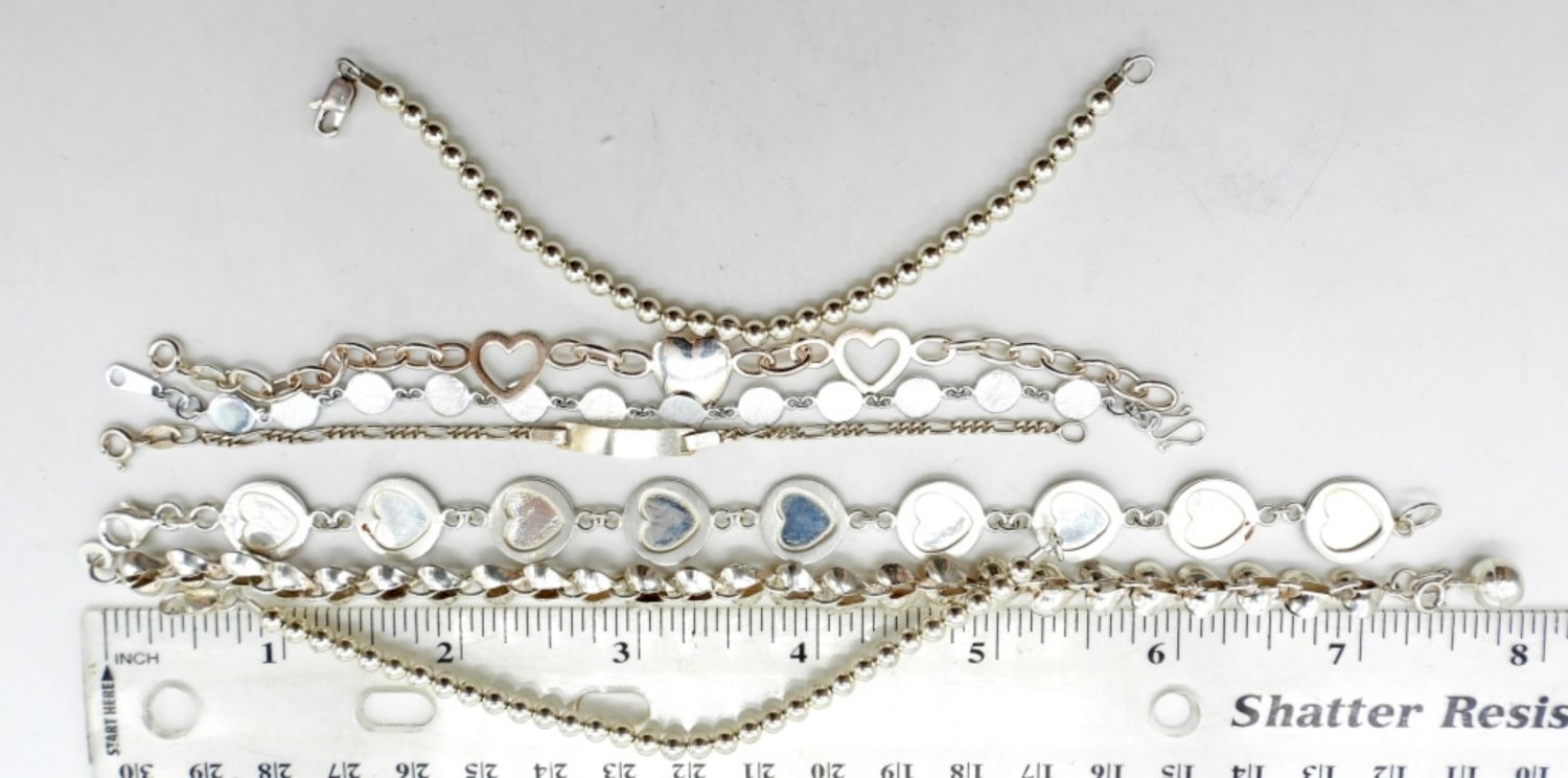 24.2DWT, 3- 5 1/2IN LONG, 2- 6IN LONG, 1 – 7IN LONG, 1- 8IN LONG, ALL DIFFERENT ALL STAMPED 925 NEAR CLASP