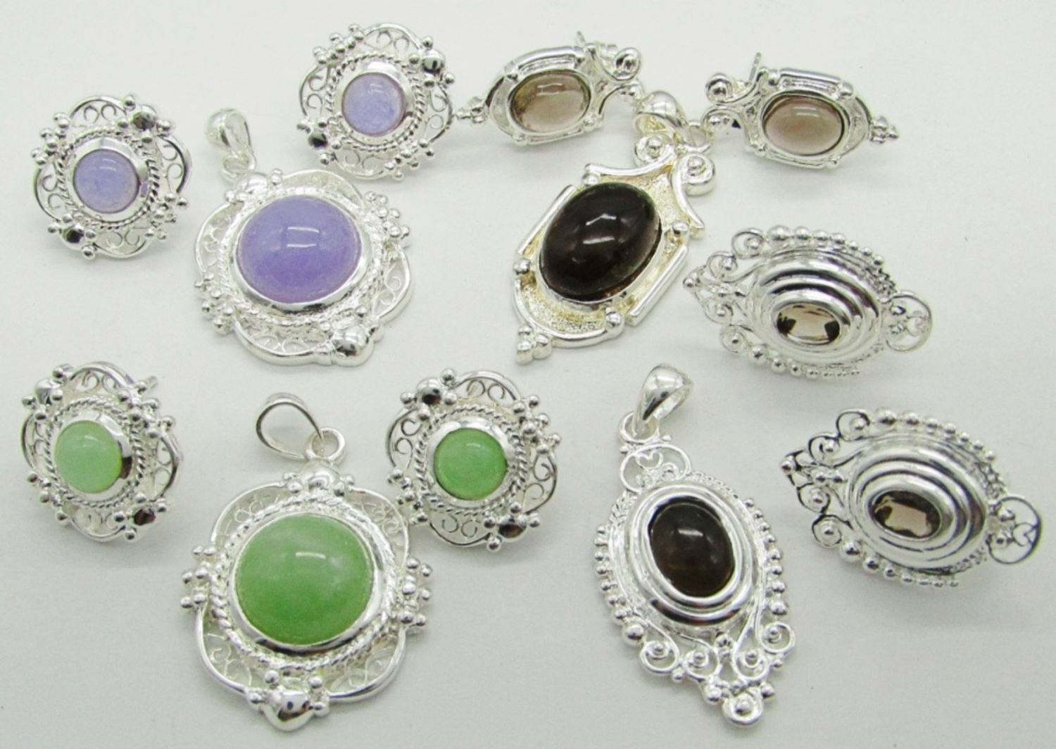 Marked 925; Jade, Purple, Smokey Quartz, Topaz Gemstones & Sterling Silver; 27dwt