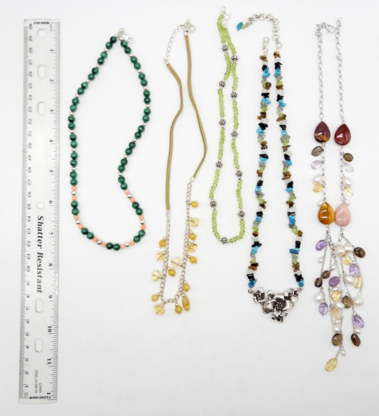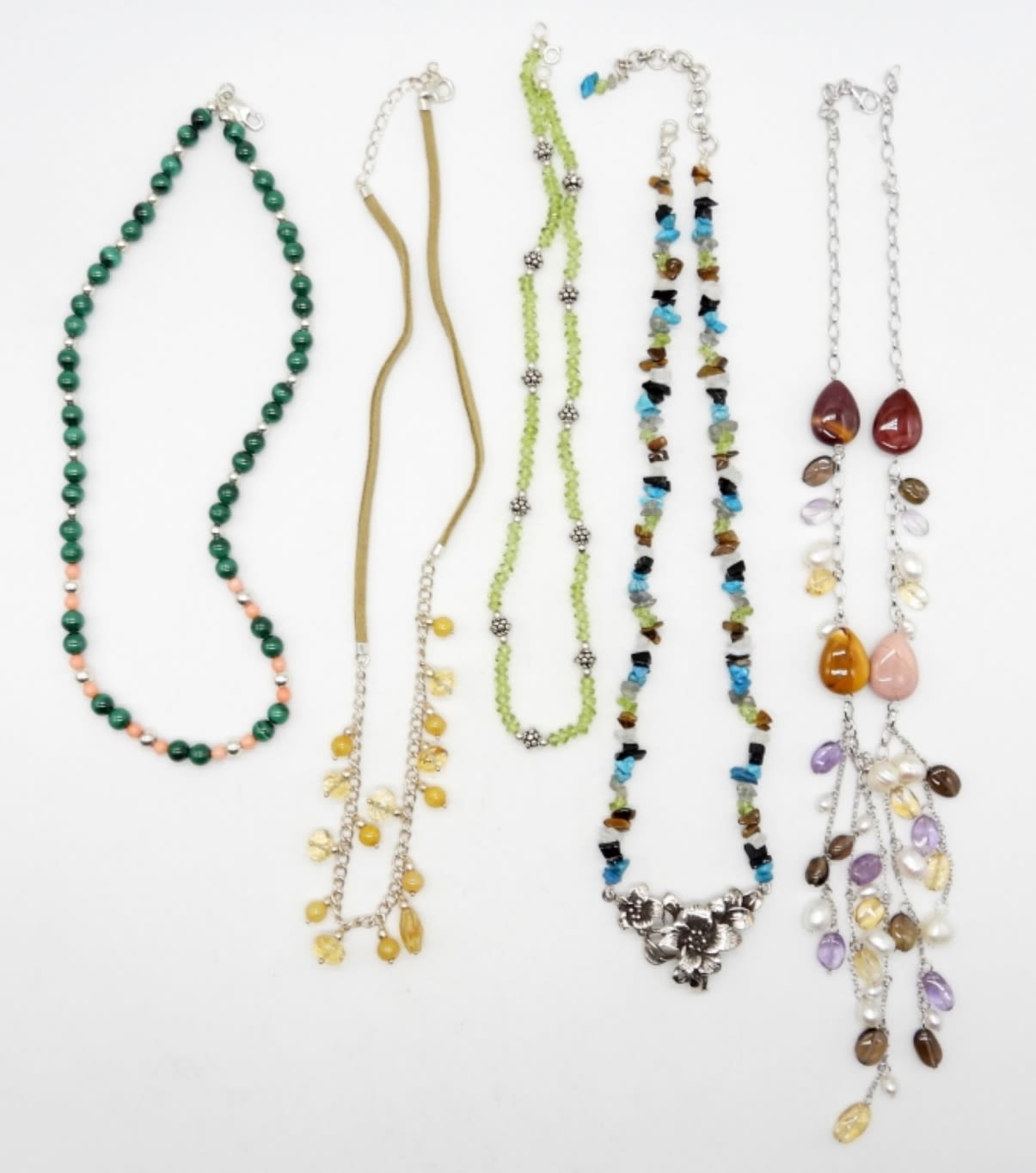 16″-21″ LENGTHS STERLING SILVER, NATURAL STONES, BEADS, LEATHER