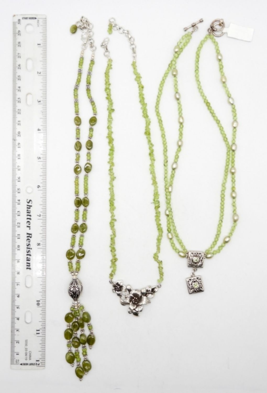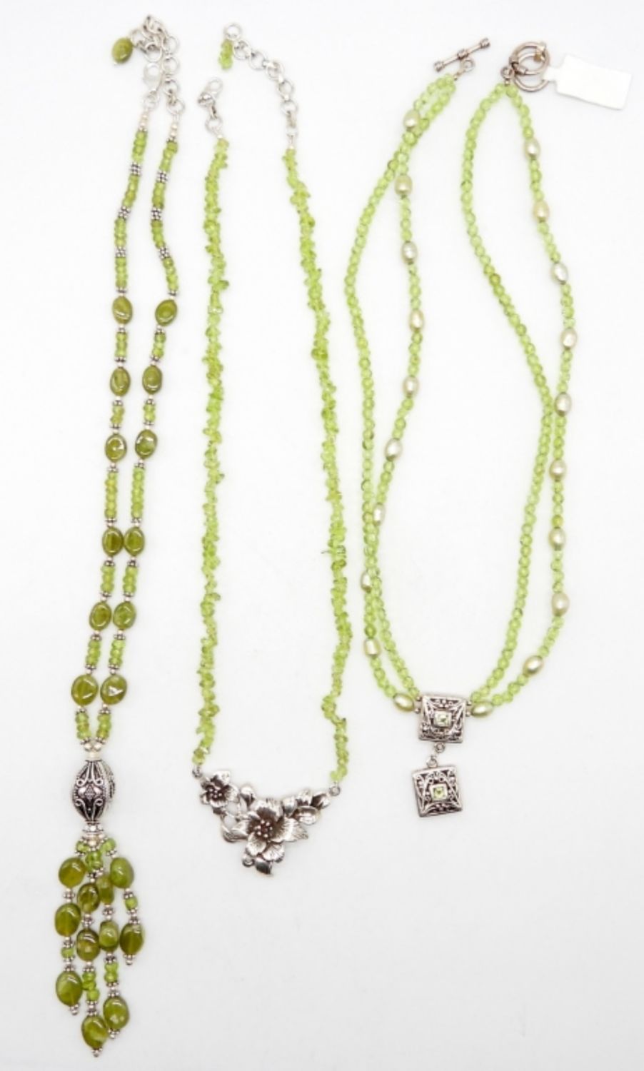 18″-21″ LENGTHS STERLING SILVER, JADEITE, & GREEN GEMSTONES