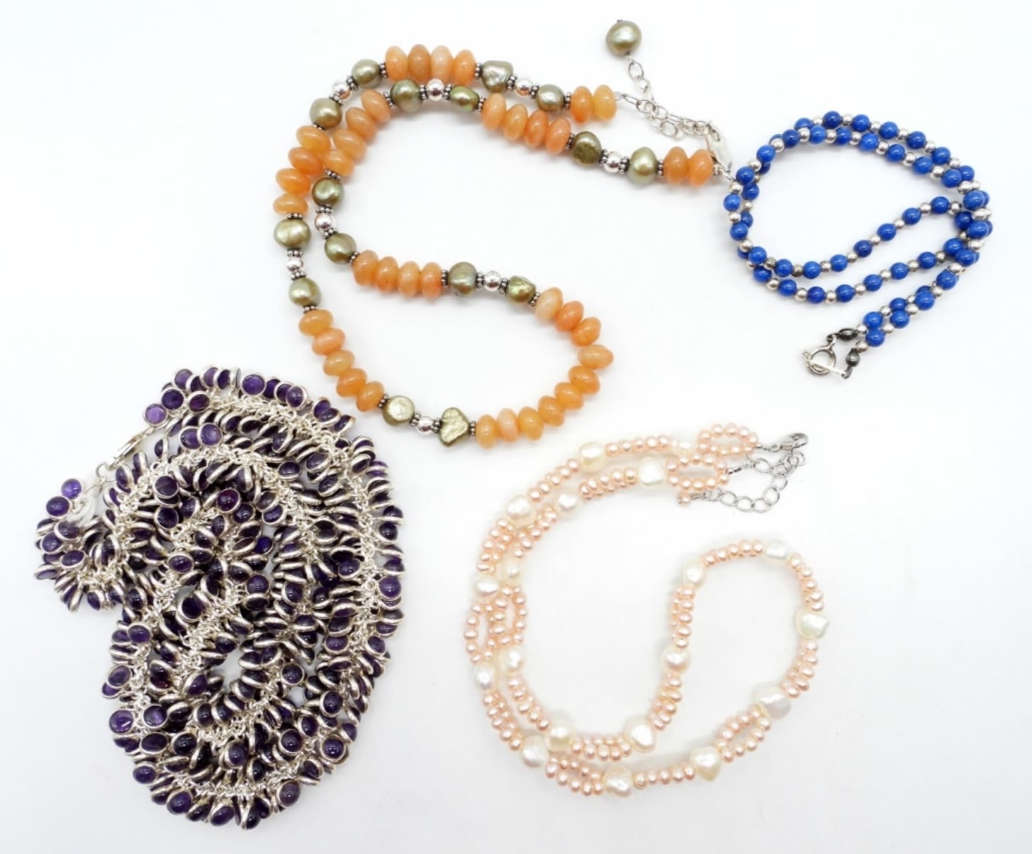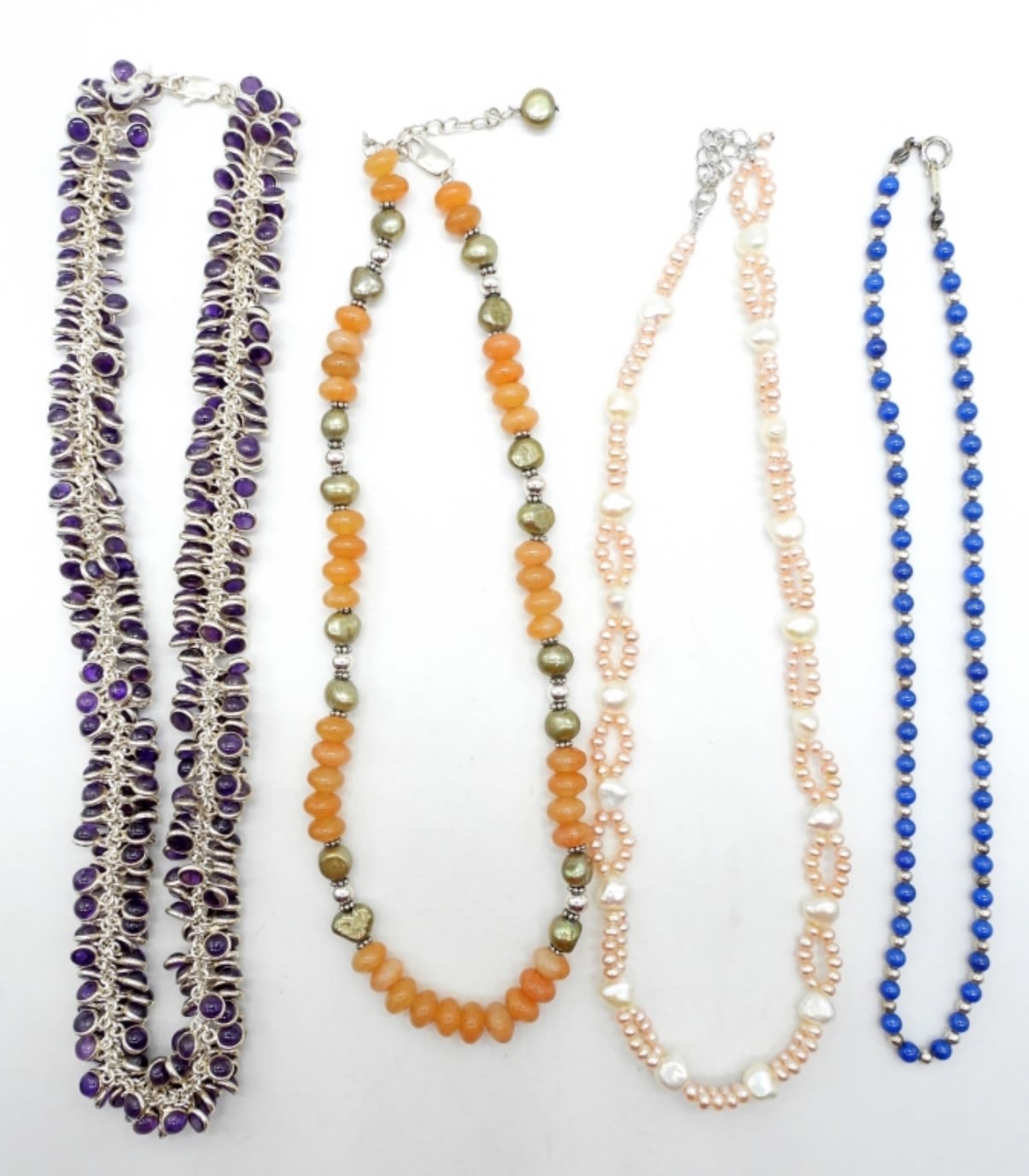 16″-18″ STERLING SILVER WITH MOTHER OF PEARL & NATURAL STONES