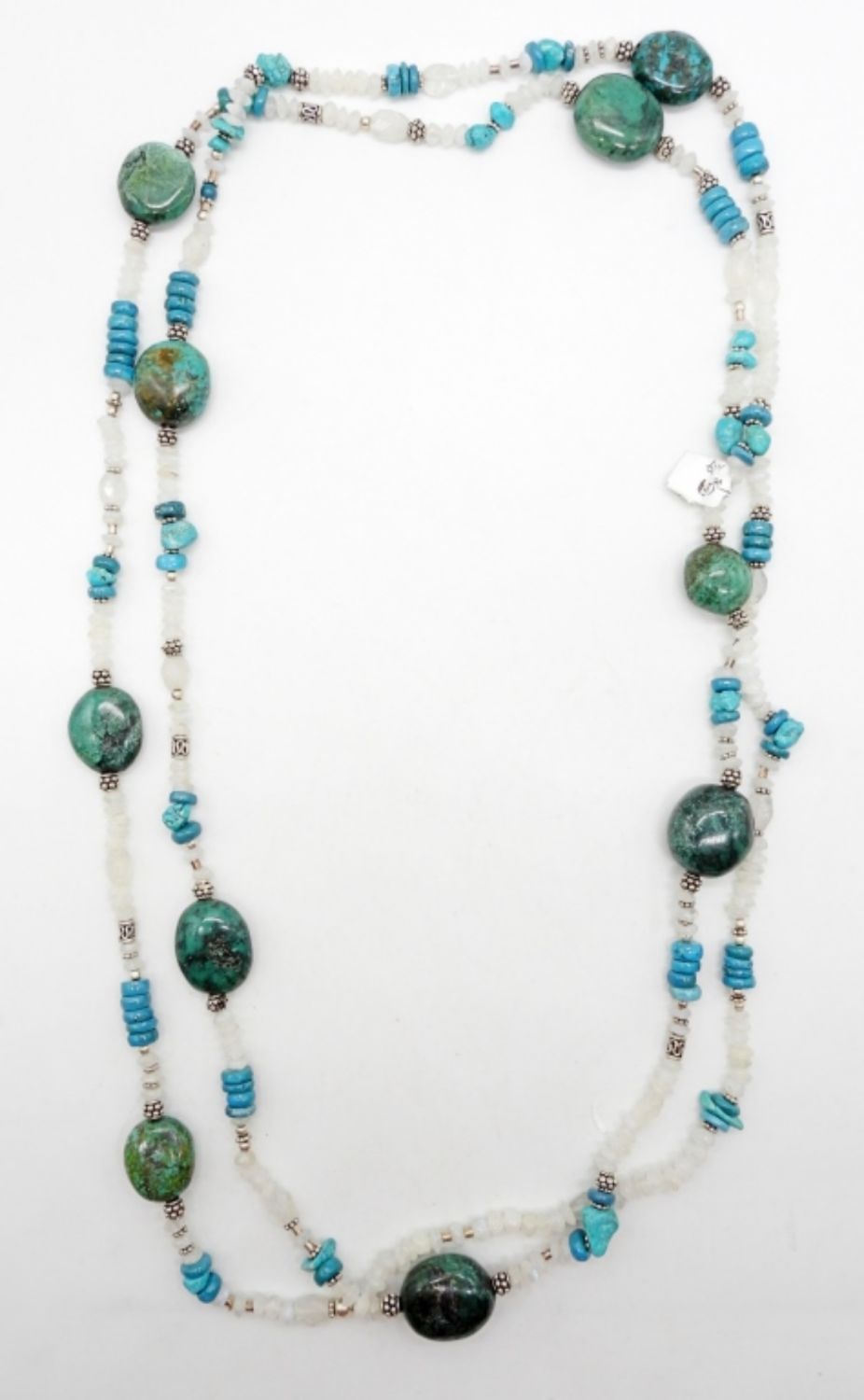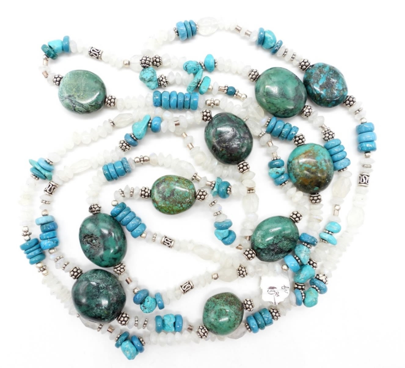 60″ STERLING SILVER BEADED LARGE TURQUOISE STONE NECKLACE