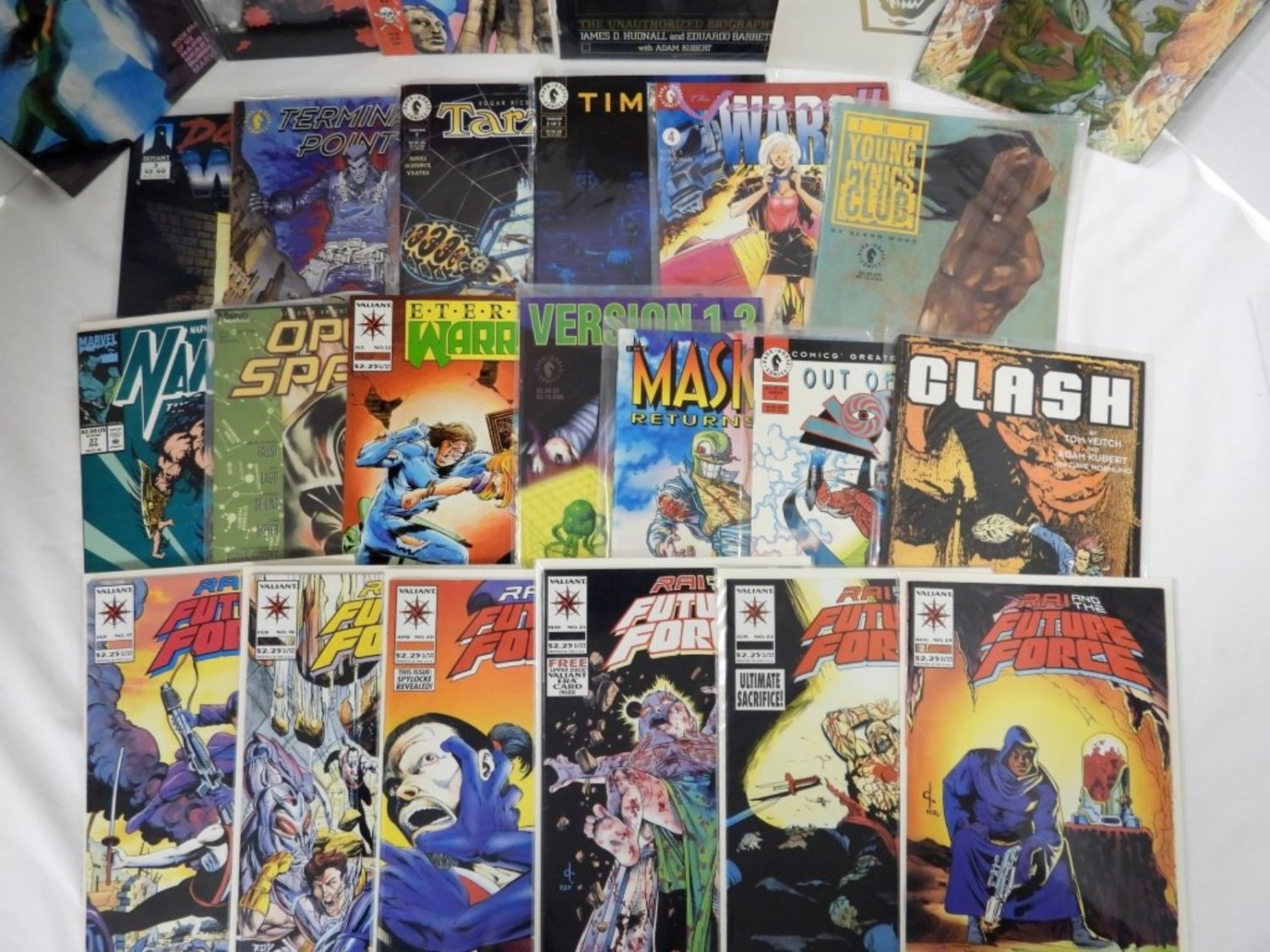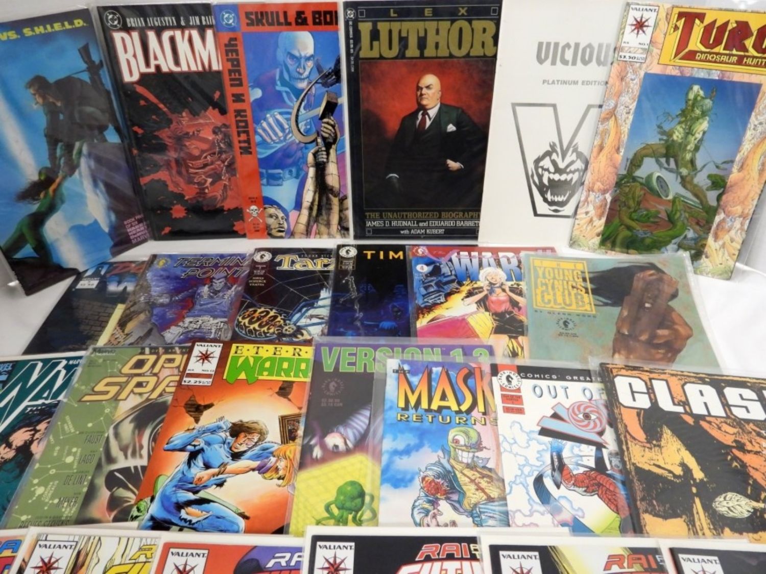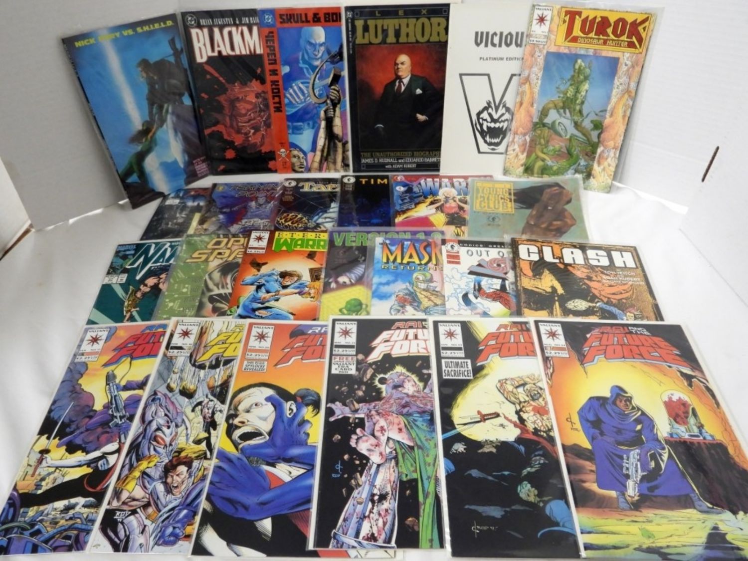 VALIANT, DEFIANT, DC – ALL DIFFERENT – NAMOR, OPEN SPACE, RAIAND THE FUTURE FORCE, ETERNAL, VERSION 1.3, YOUNG CYNICS CLUB, VENUS WARS II, TIMECOP, TERMINAL POINT, TARZAN, DOGS OF WAR, TUROK, VICIOUS, LEX LUTHOR, SKULL & BONES 2, BLACKMASK, CLASH, NICK FURY, OUT OF THE VORTEX, MASK RETURNS – INTERESTING LOT