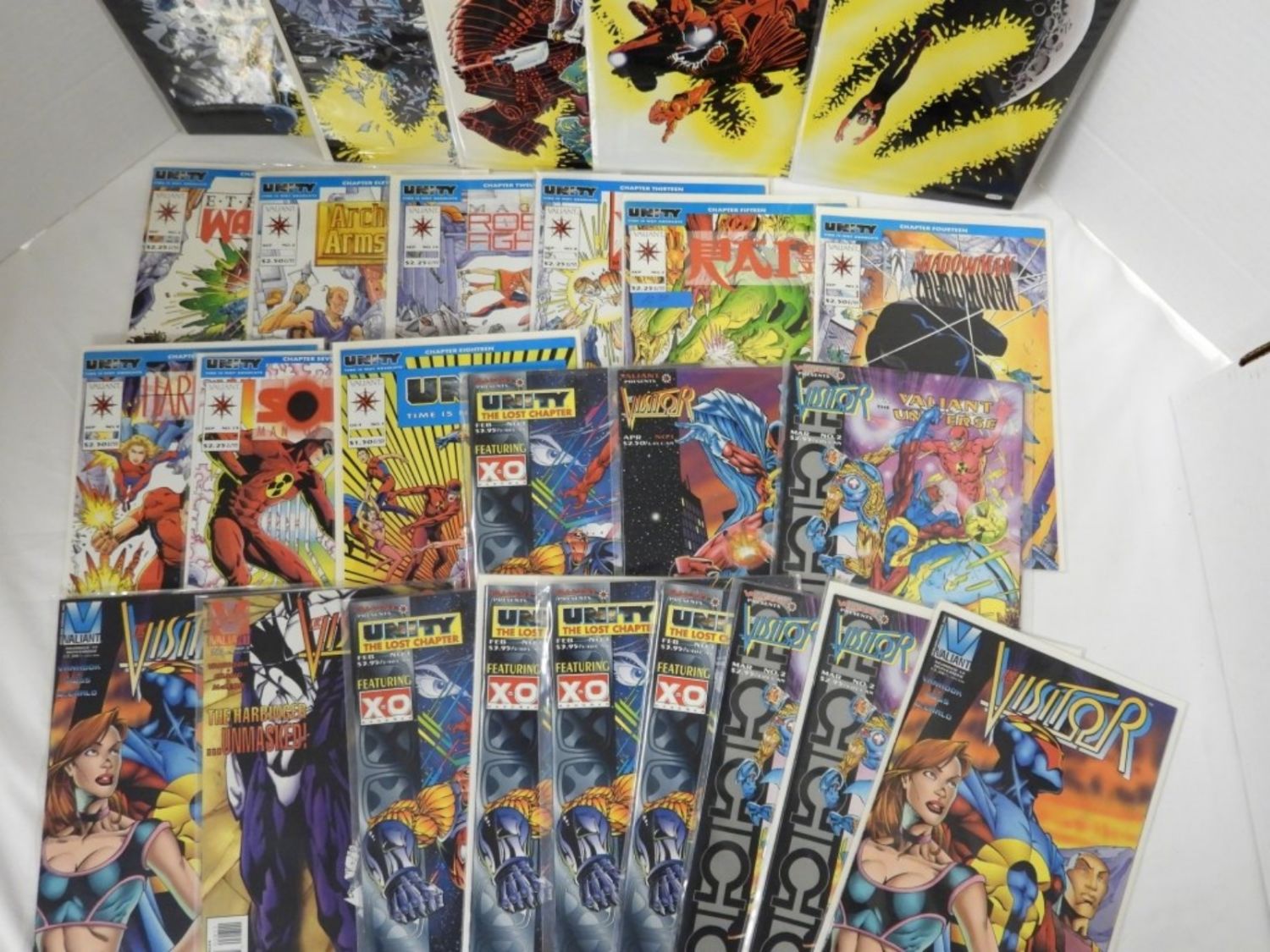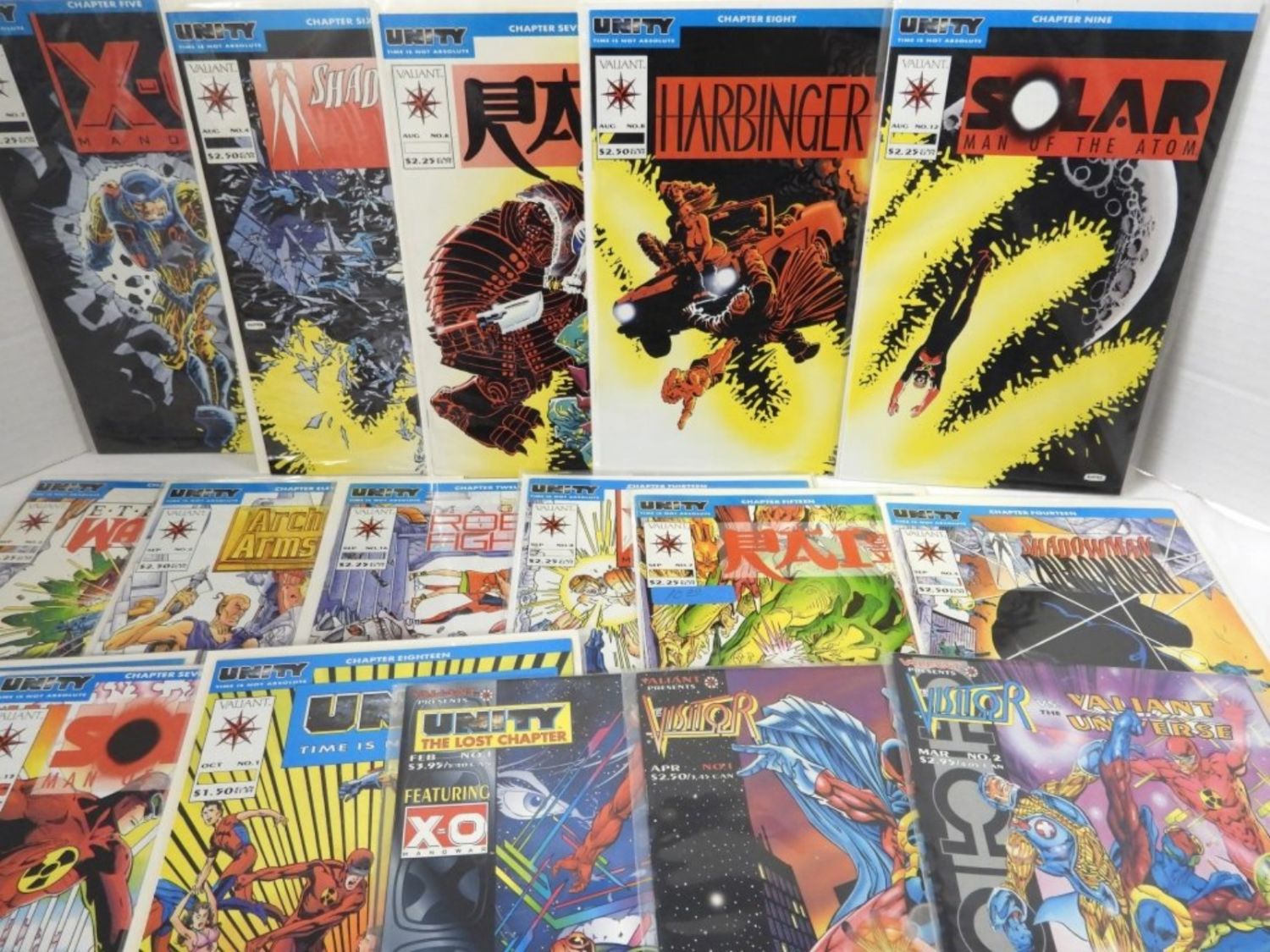 X-O, SHADOWMAN, RAI, HARBINGER, SOLAR, ETERNAL WARRIOR, ARCHER, MAGNUS ROBOT FIGHTER, UNITY, VISITOR & MORE plus (7) DUPLICATES of VISITOR & UNITY – 26 TOTAL COMICS – NICE CONDITION