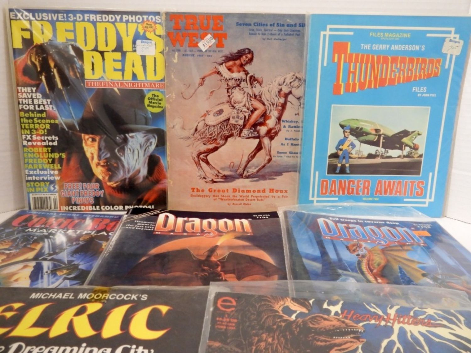 TRUE WEST, THUNDERBIRDS, COMIC BOOK MARKETPLACE, DRAGON, TOR & ELRIC – AVG CONDITION