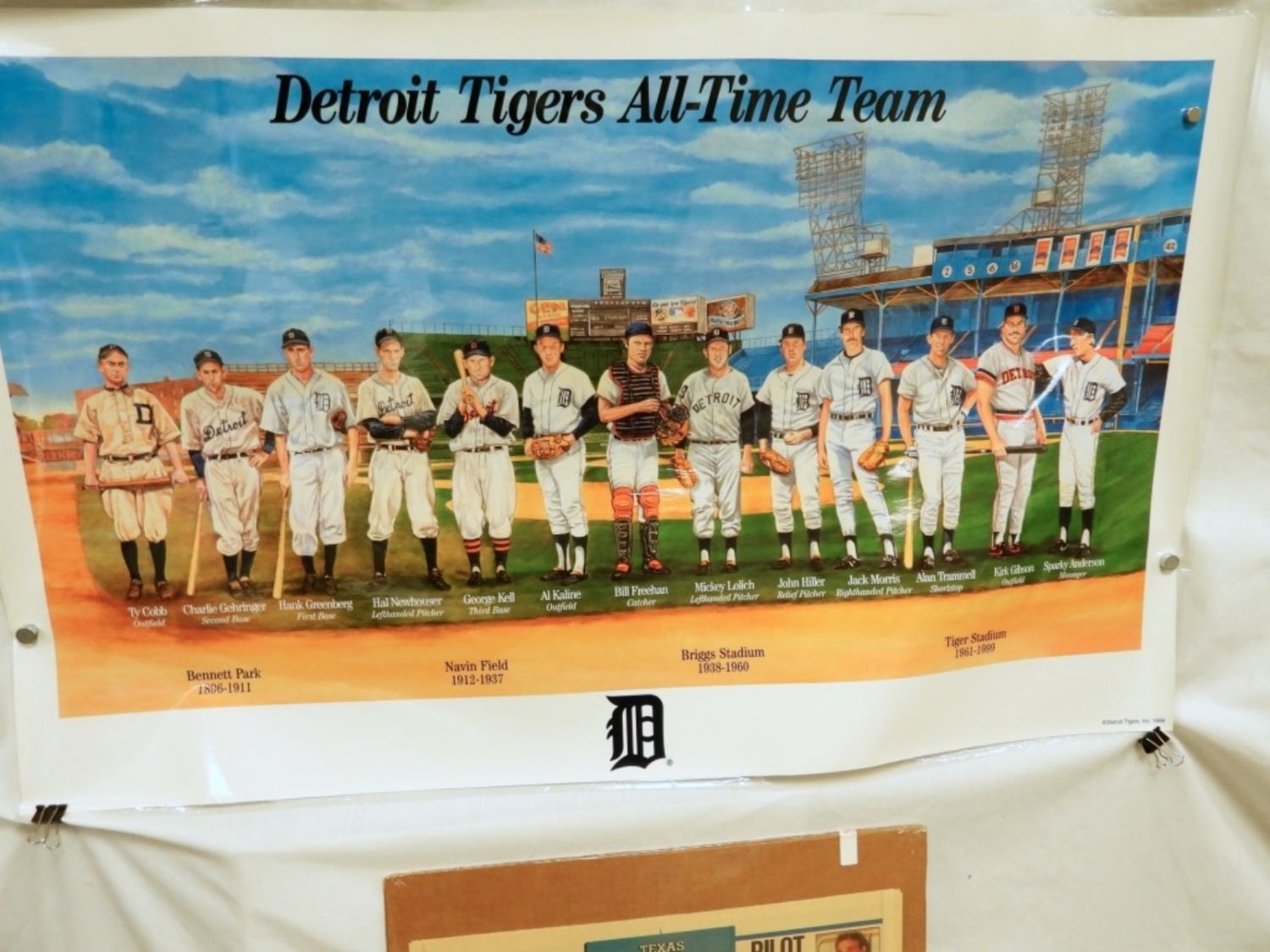 COMPLETE EVENING STAR-TELEGRAM BOARDED NICE CONDITION & DETROIT TIGERS ALL-TIME TEAM POSTER