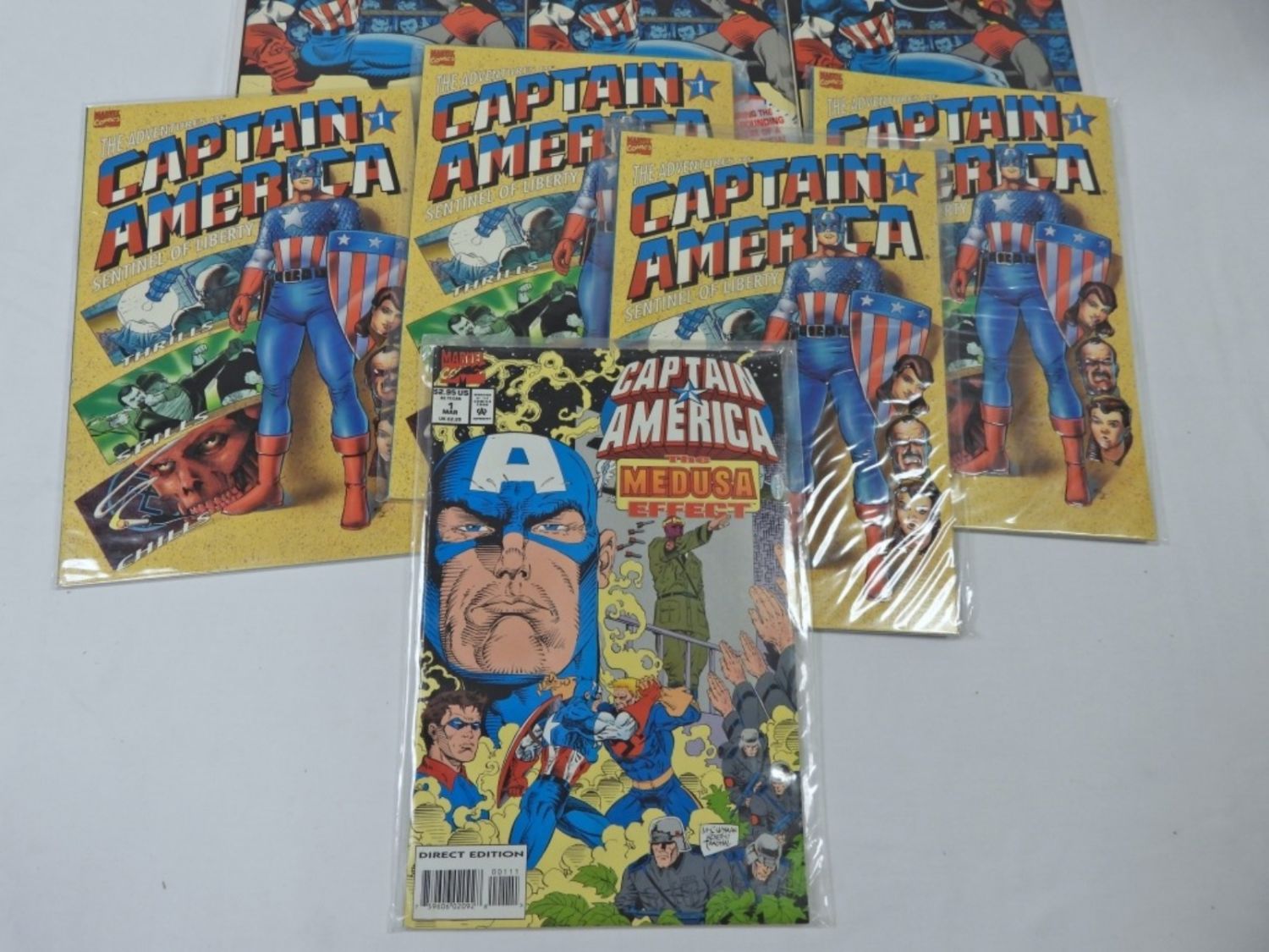 (4) THE ADVENTURES OF CAPTAIN AMERICA #1; CAPTAIN AMERICA THE MEDUSA EFFECT #1, (3) CAPTAIN AMERICA 64pg ANNUAL #12 30yr EDTION – SLEEVED NICE CONDITION