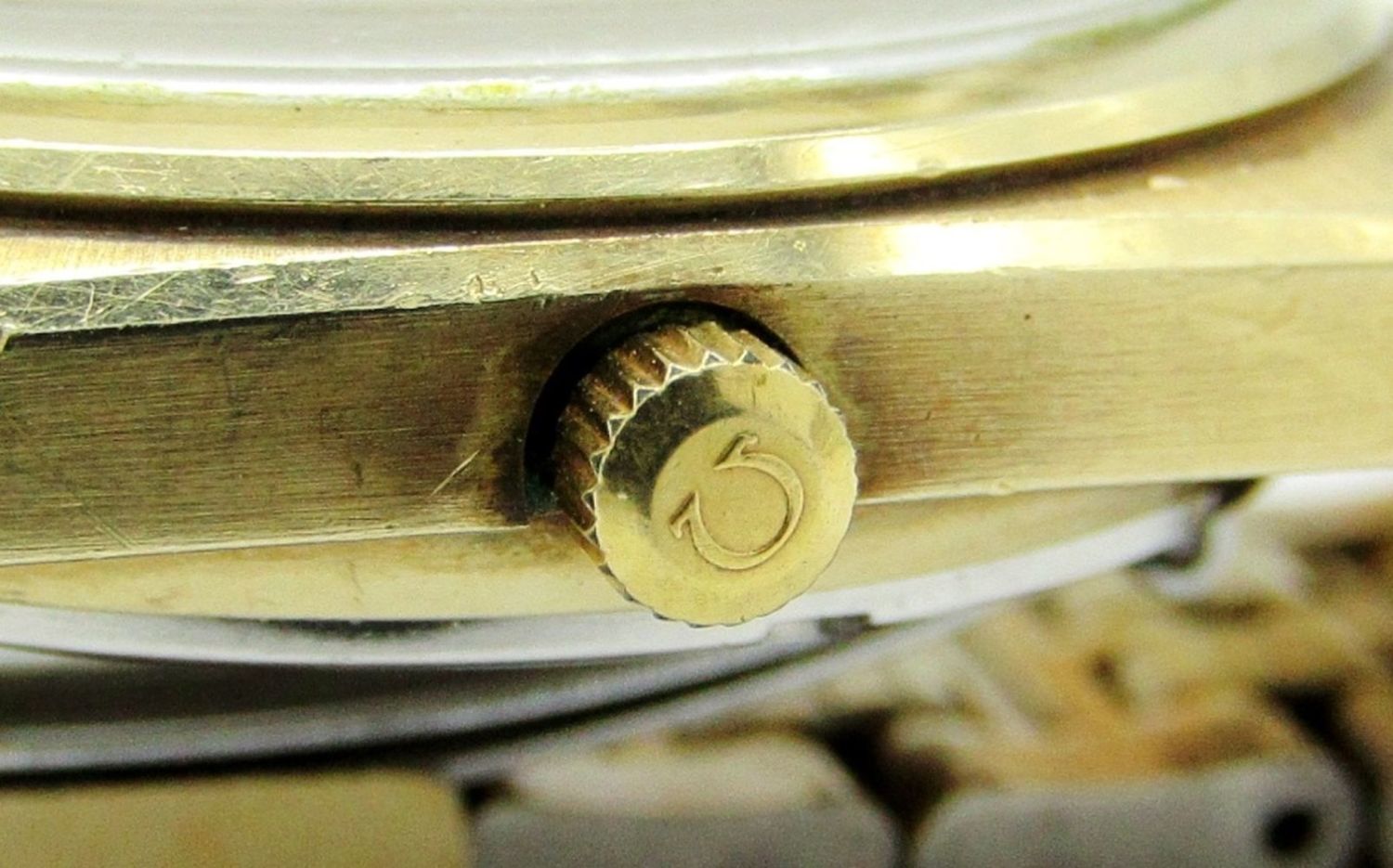 Perfect Tutone Dial with Day/Date, Ref 198.0034, 38mm Case Diameter, Omega 1260 Movement, Gold Plated Case with Steel Back, Gold Plated Omega Bracelet. Nice & Keeping Time!