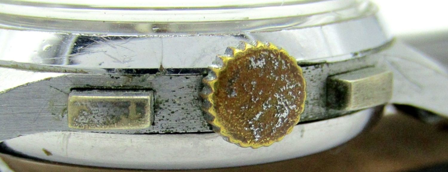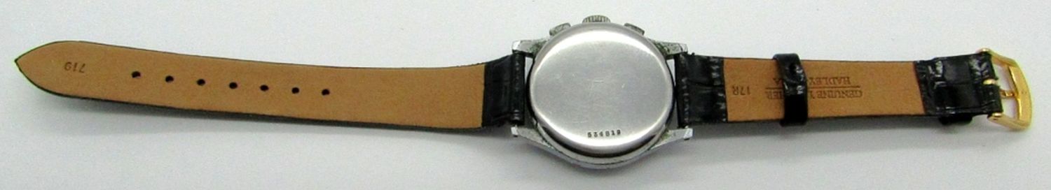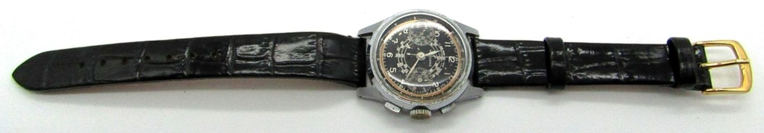 Nice, Original Black Dial With Copper Chapter Ring and Original Hands. 33mm Case Diameter, Triple Signed, 17 Jewel (Venus) Movement, Chrome Frame with Stainless Bezel & Back. Great Bezel! New Strap.
