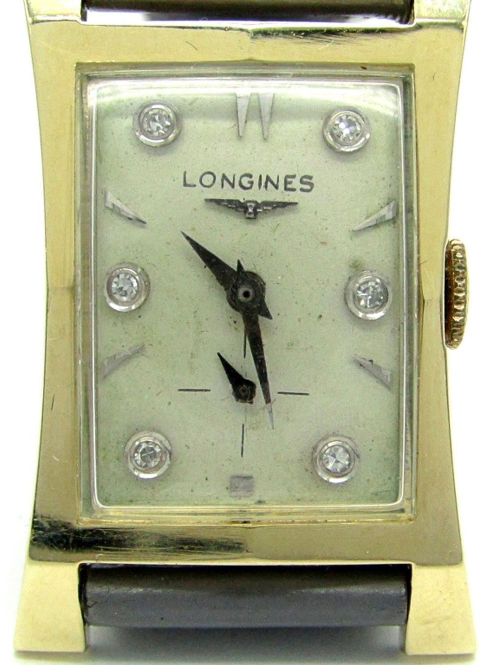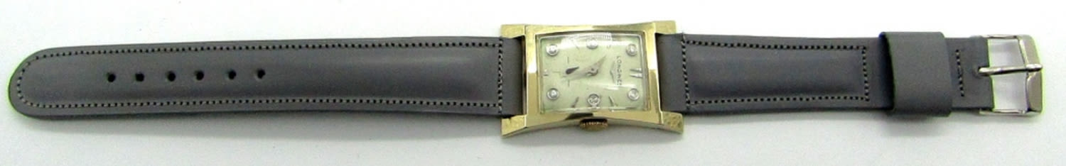 Very Nice Cream Diamond Dial, 40mm Long 14KT White Gold Case, Cal 9LT, 17 Jewel Movement, Vintage Gray Strap, Complete with Metal Longines Box.