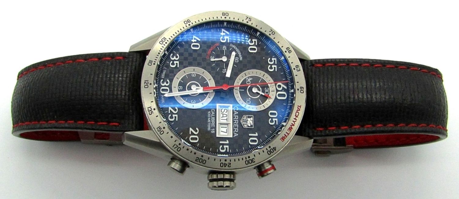 Ref CV2A80, Perfect Textured Black Dial – Carbon Fiber, 44mm Titanium Case with Display Back. Calibre 16 Automatic Movement, Original Padded Strap with Signed Deployment Titanium Buckle. As New Condition andComplete with Boxes & Instruction Book.