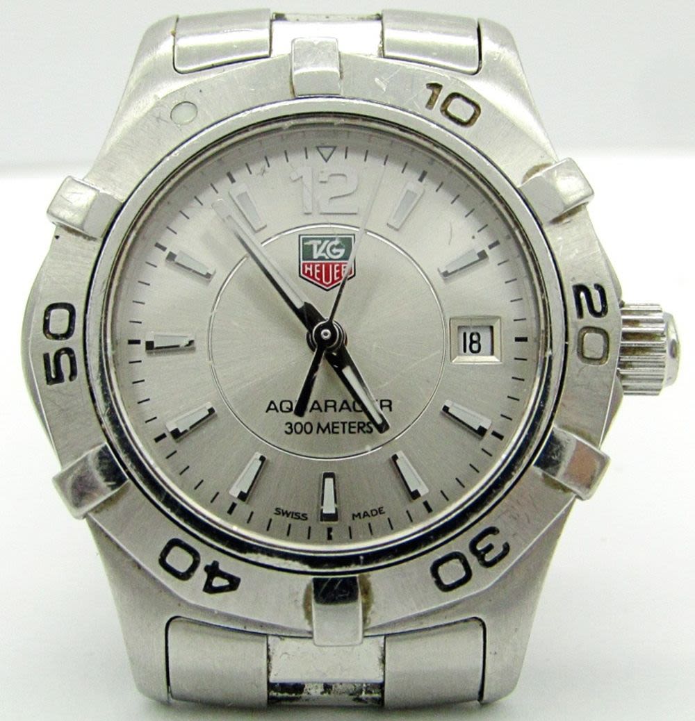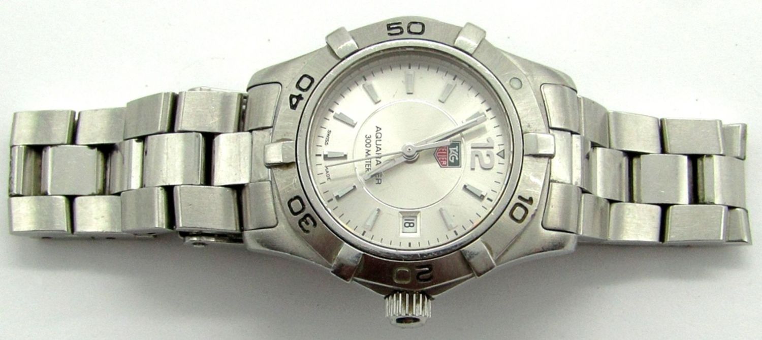 Mint Original Silver Dial, Stainless Screwback Case WAF 1412, 27mm, Quartz Movement. Stainless Tag Heuer Flip Lock Bracelet with Extension Link.