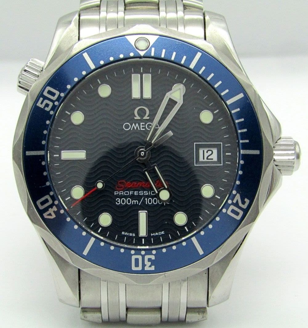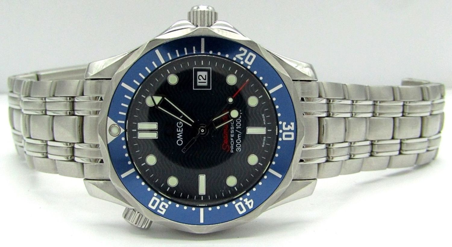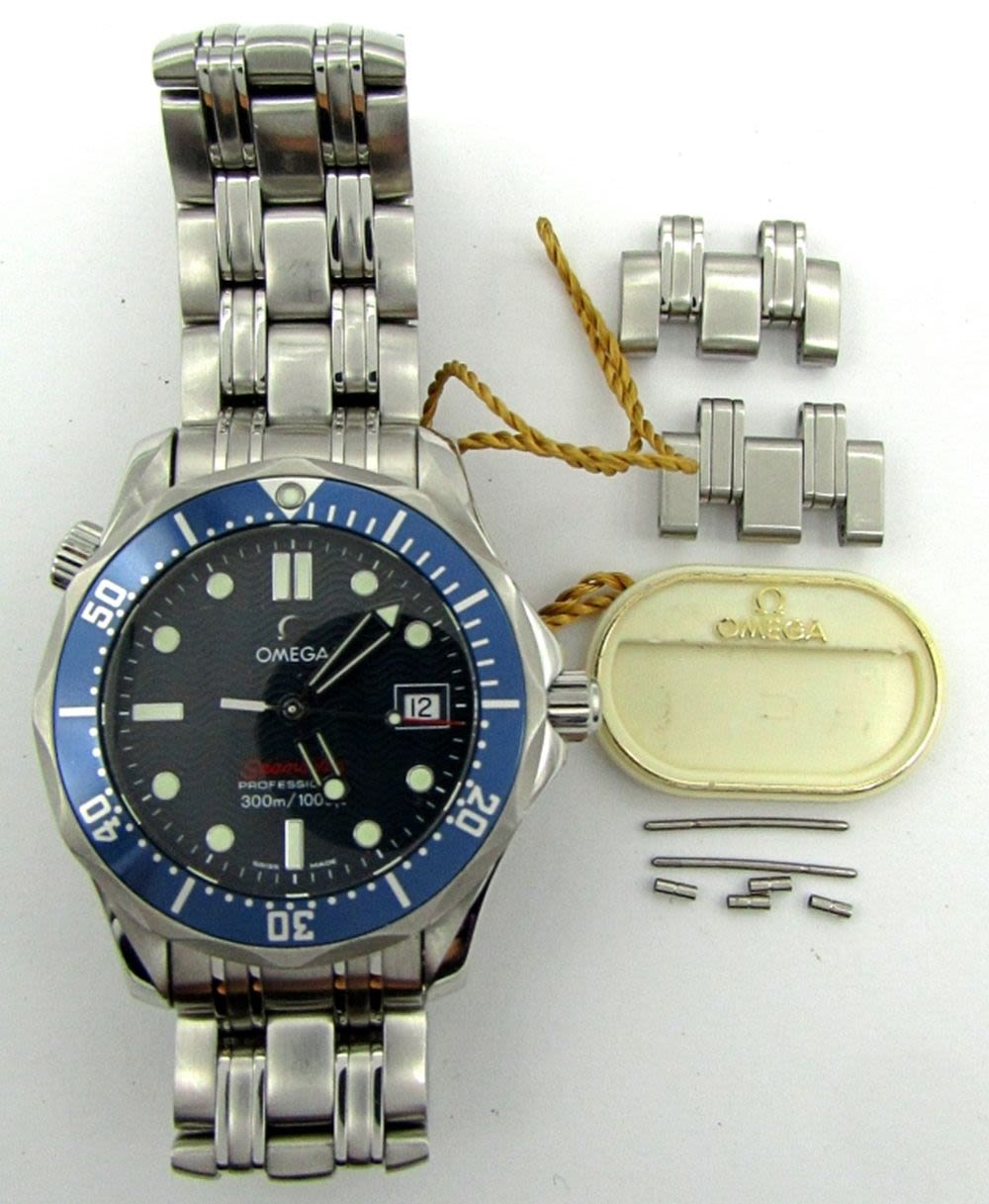 Ref 2223.80, Perfect Blue Wave Dial, 36mm Diameter, Cal 1538 Quartz Mov’t, Stainless Omega Case and Bracelet. Excellent Condition with Hand Tag & Extra Links.
