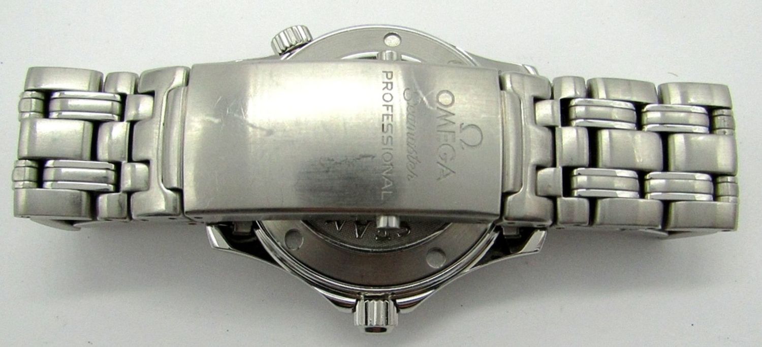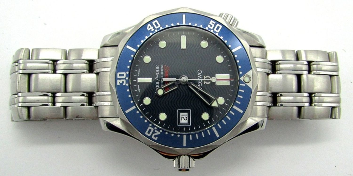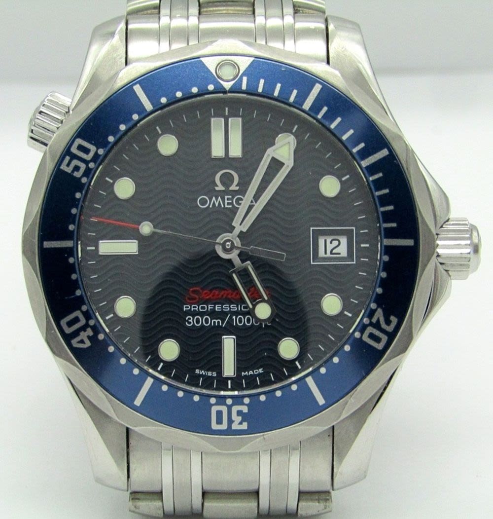 Ref 2223.80, Perfect Blue Wave Dial, 36mm Diameter, Cal 1538 Quartz Mov’t, Stainless Omega Case and Bracelet. Excellent Condition with Hand Tag & Extra Links.