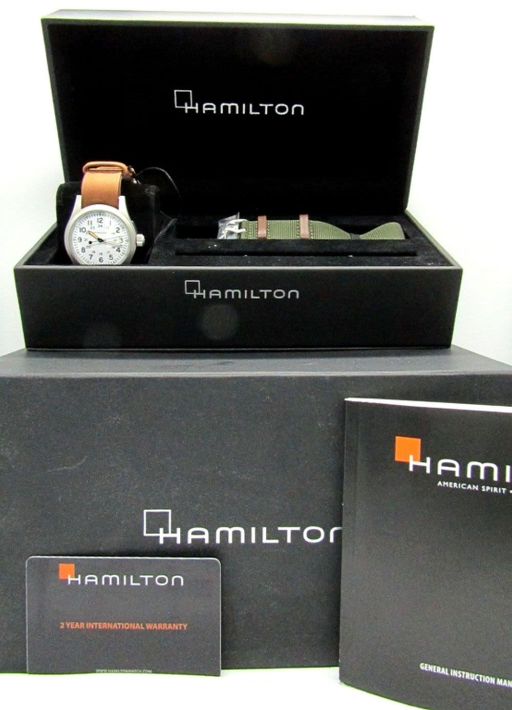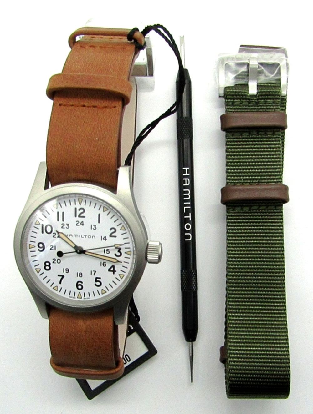 Ref H69439512, 38mm Stainless Case, H50 Mechanical Manual Wind. This watch is As New Unused. Complete with Boxes, Instruction Boos, Warranty Card, Extra Strap and Band Removal Tool.