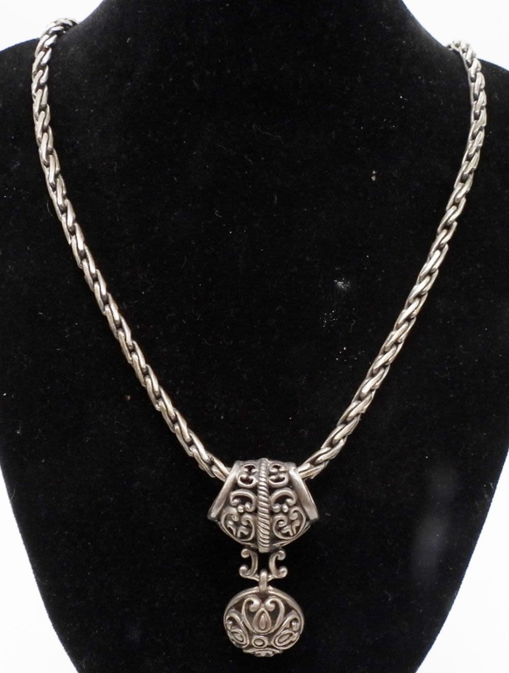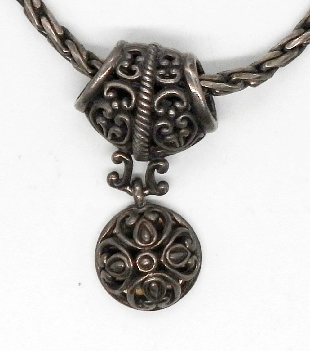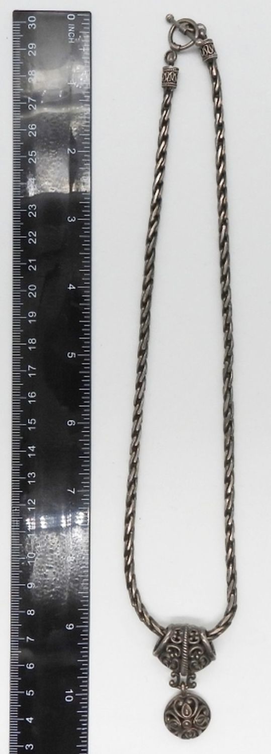 33.9 DWT; BEAUTIFUL STERLING SILVER ORNATE DESIGN DARK TONE NECKLACE; 19″ CHAIN; MARKED 925