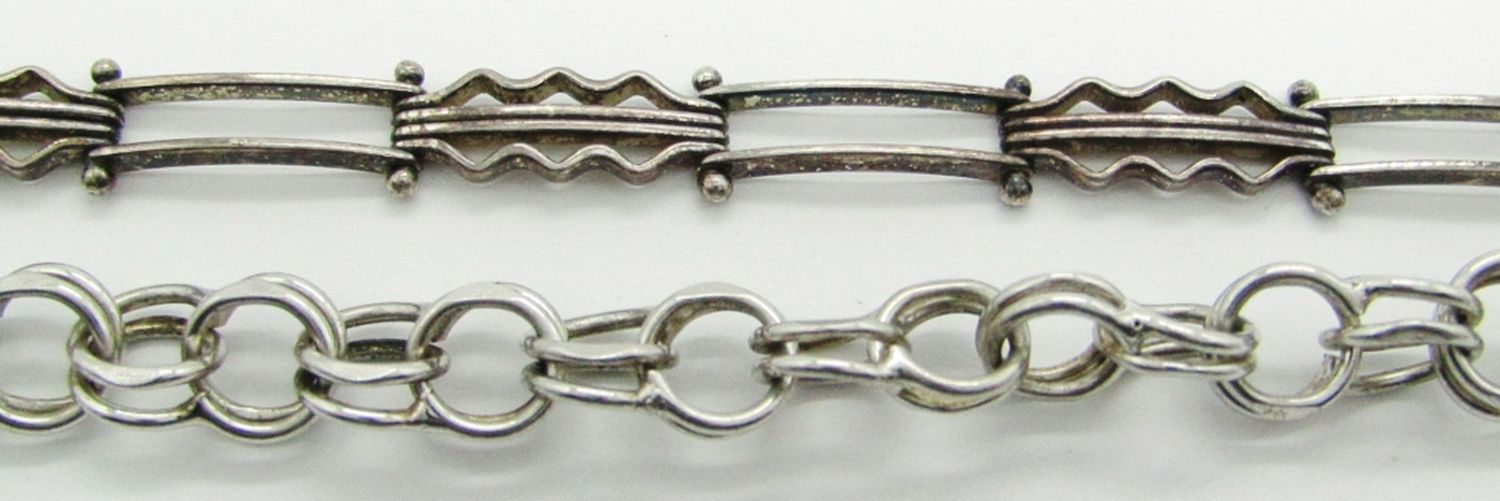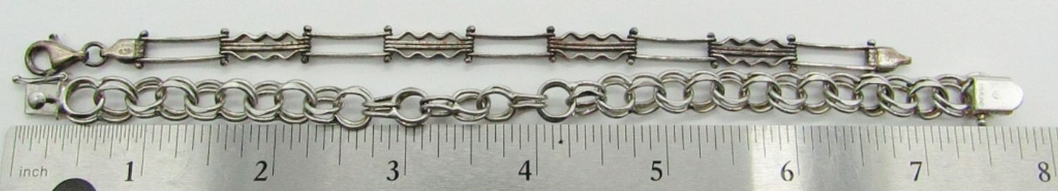 16.2 dwt. 7.5″ Marked Sterling Link Bracelet; 6.5″ Marked 925 Italy Hinge Bracelet.