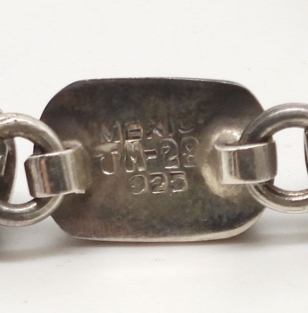 32.6DWT, 7 1/2IN LONG, BLACK ONYX INLAY, OPEN BOX CLASP, STAMPED TM-28 MEXICO 925, PIERCED MATCHING STUD EARRINGS, STAMPED TM-245 MEXICO 925