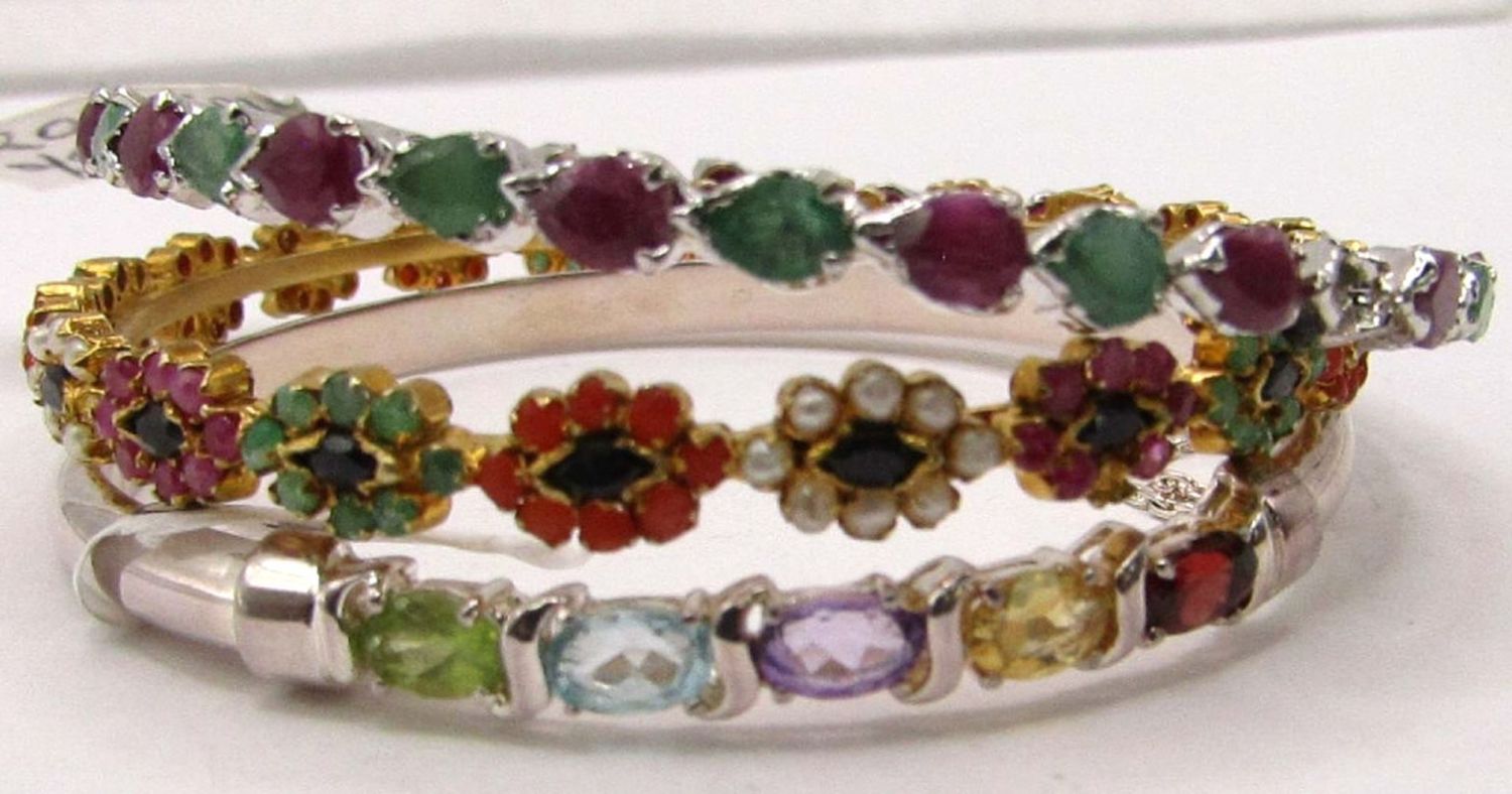 1 MOTHER/ GRANDMOTHER STONES, ONE GOLD TONED WITH CORAL, PEARL AND PERIDOT STONES, AND ONE WITH JADE AND AMETHYST STONES