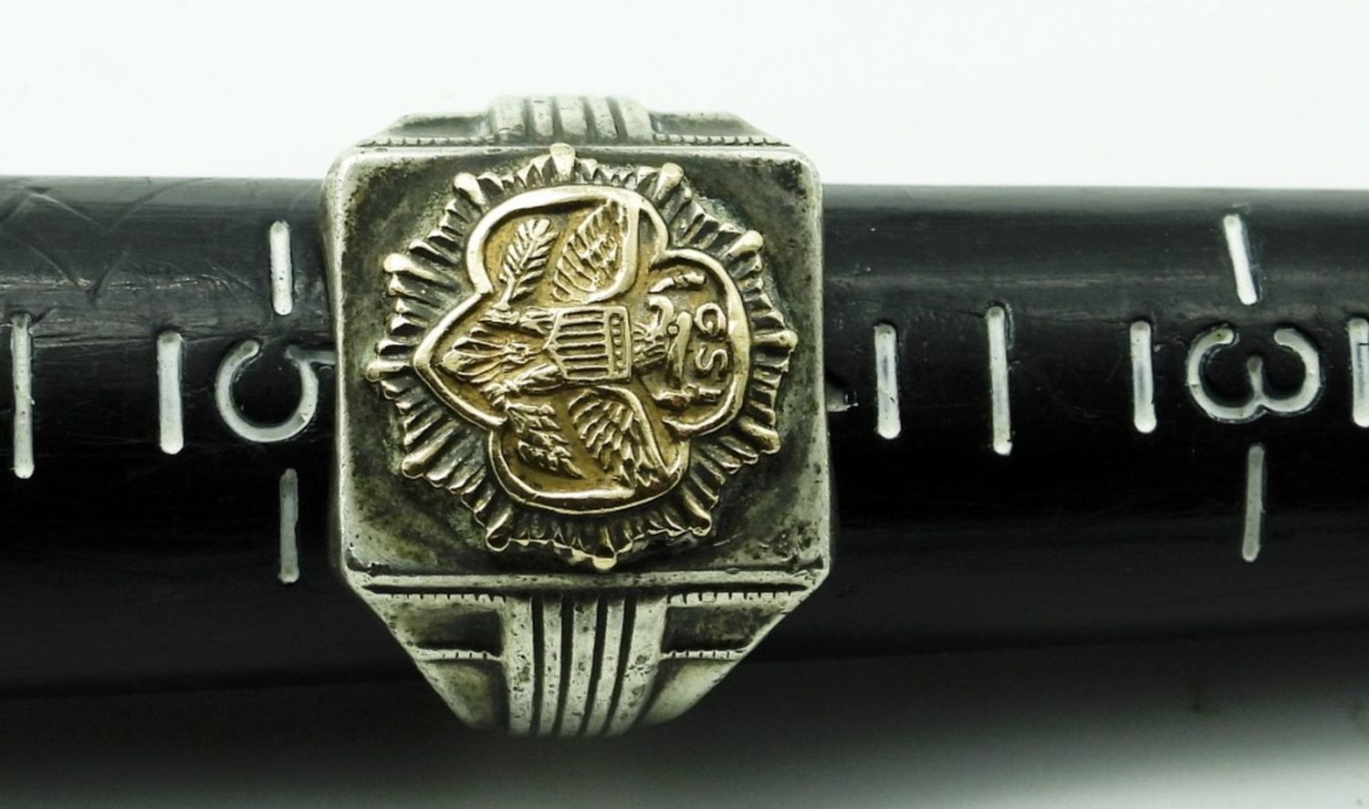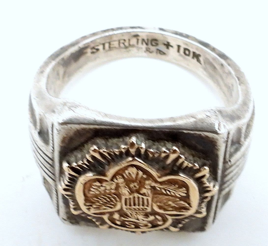 5.8 DWT, STAMPED STERLING & 10K ON THE INSIDE, SIZE 4 1/2. GIRL SCOT LOGO IN 10K ON THE FRONT