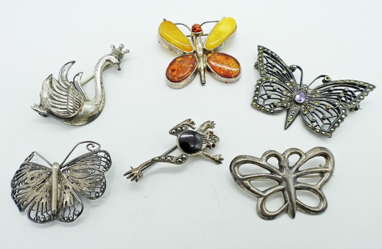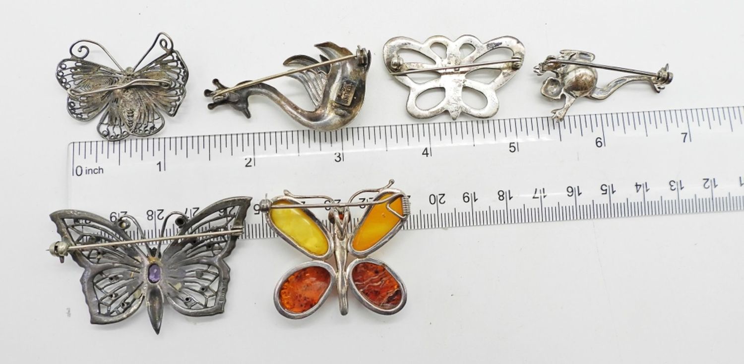 32DWT, 4- 1 1/2IN LONG, 2- 2IN LONG, STAMPED EITHER STERLING OR 925, SOLID BUTTERFLY IS ALSO STAMPED FJ