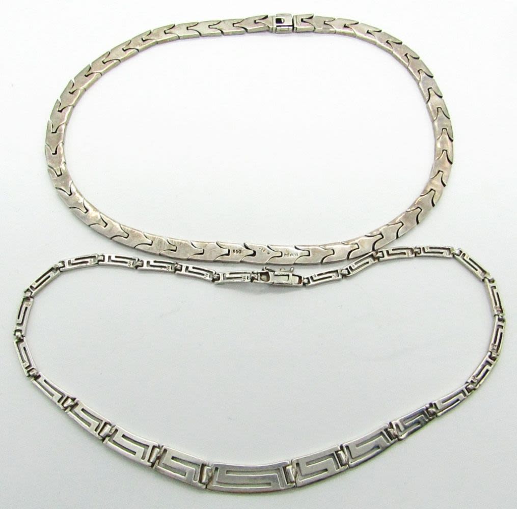 16″ Greek Key Necklace Marked 925, 16″ Flat Necklace/Choker Marked 950 MFV Mexico; 60 dwt.