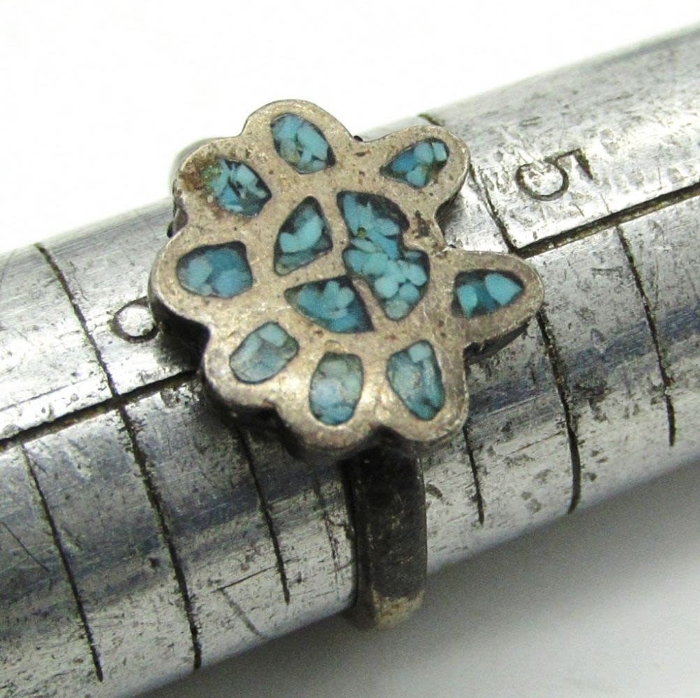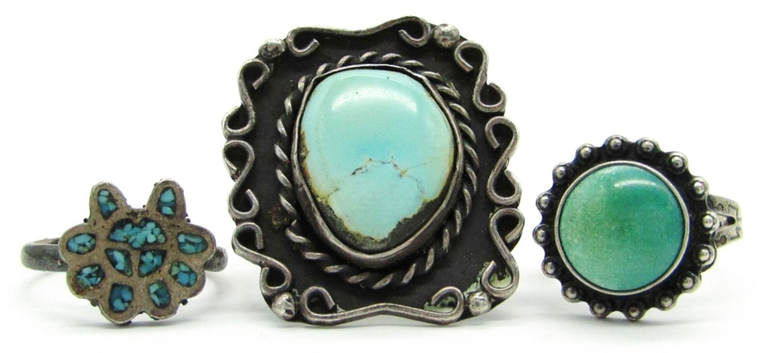 Size 7.5 Turquoise and Sterling Silver Marked 925, Size 6 Turquoise Marked Sterling, Size 5.5 Turquoise Inlay Unmarked; 11.1 dwt.
