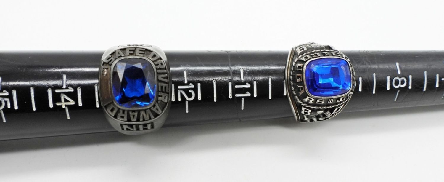 29DWT, 1- 1980 CONANT COUGARS, STAMPED ARGENTUS SIZE 10,1-UNITED STATES AIRFORCE 54, STAMPED STERLING SIZE 11 1/2, 1 SAFE DRIVE AWARD NEW YORK CITY SERVICES, STAMPED STERLING