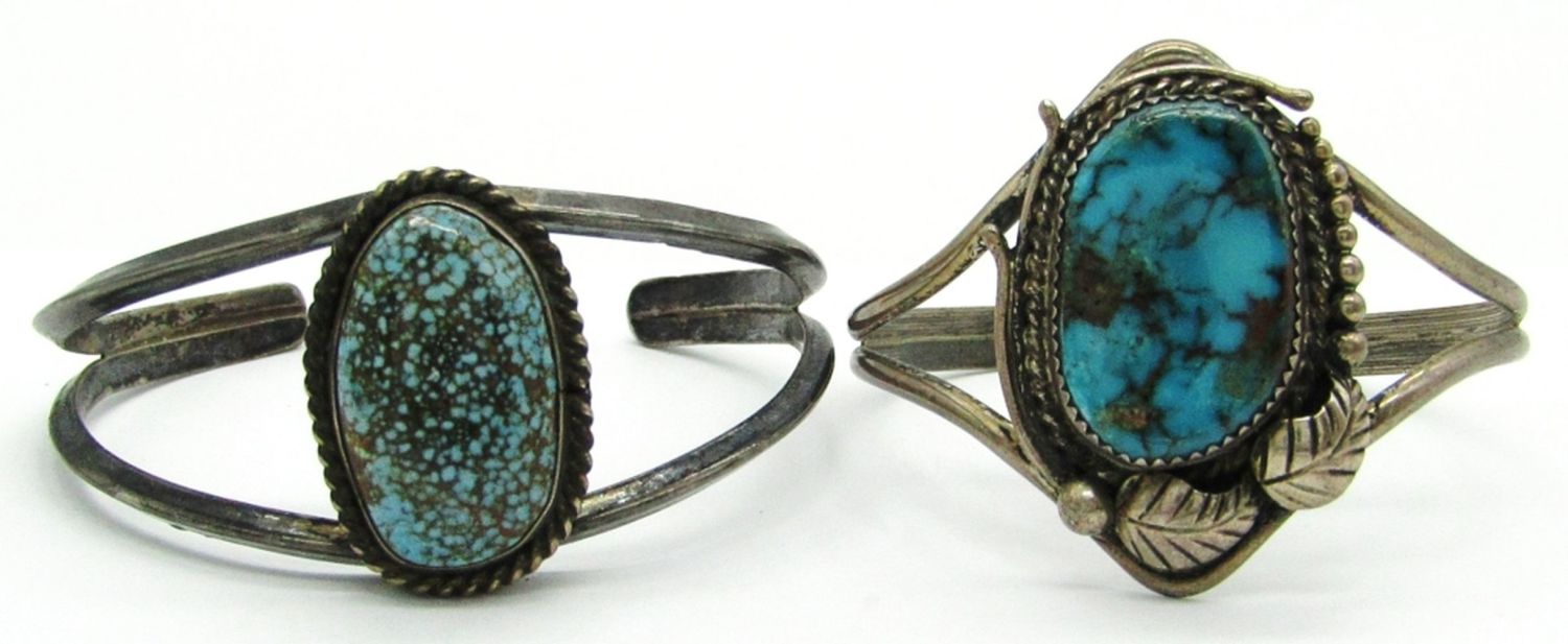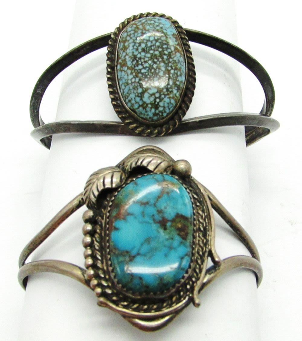 Size 6.5 Turquoise Stone Split Cuff; Size 5.5 Turquoise Stone Split Cuff Marked MC; 25.5 dwt.