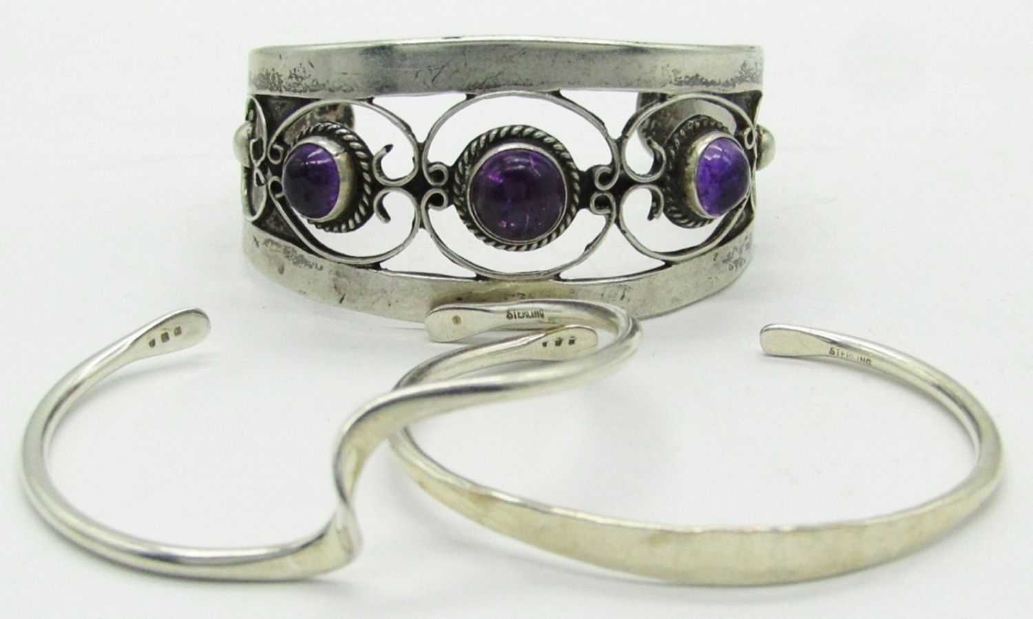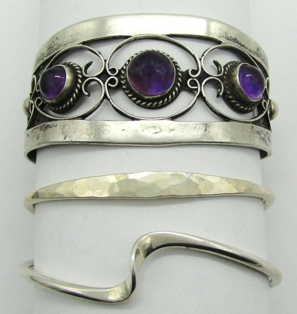 Size 6 Sterling Silver and Amethyst Marked Mexico Silver, Size 5.5 Sterling Silver Marked Sterling, Size 5.75 Sterling Silver Marked Sterling; 26 dwt.