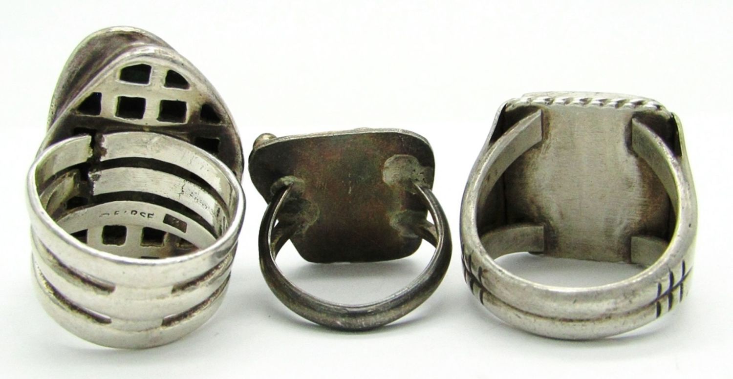 Size 10.5 Unmarked, Size 7.5 Marked 925, Size 7 Unmarked; 32 dwt.