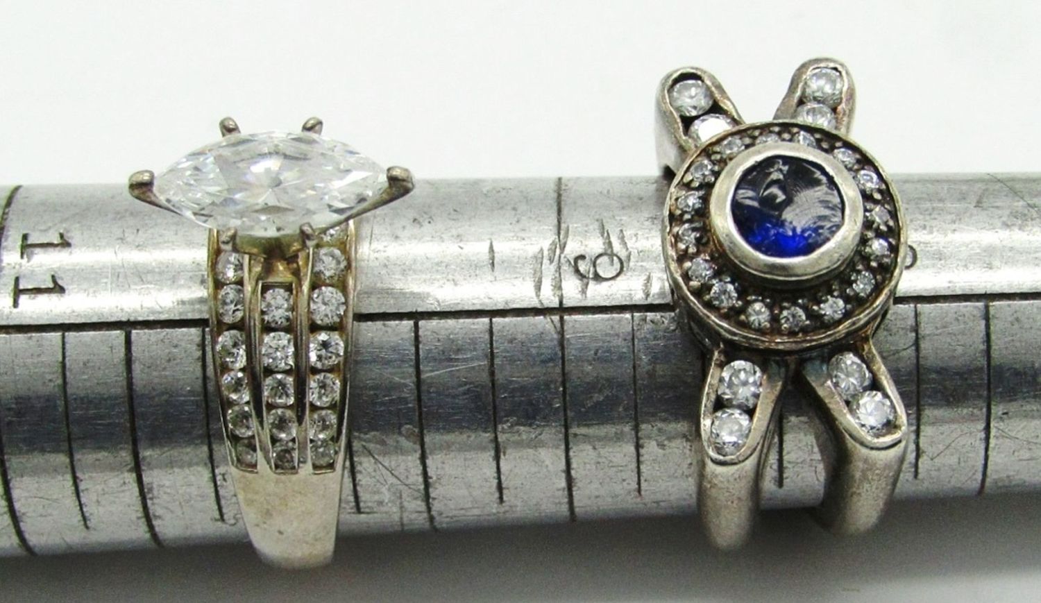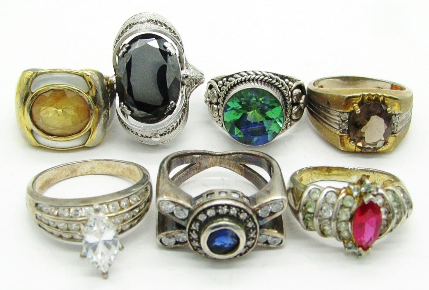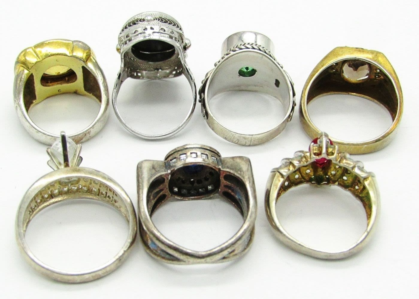 Sizes 10, 10, 9, 8, 8, 7.5, 6; Marked 925 CZ, 925, 925, 925, 925 Kylo, Sterling, 925 CK; 35.3 dwt.