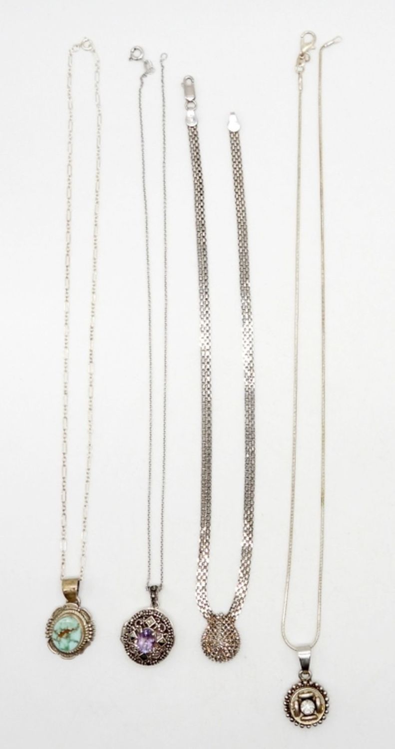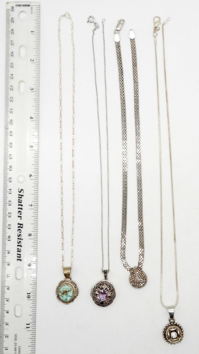 STERLING SILVER NECKLACES WITH MARCASITE, TURQUOISE & GEMSTONES – 17″-20″ CHAIN LENGTHS – 23.3 DWT – MARKED STERLING, 925, ITALY